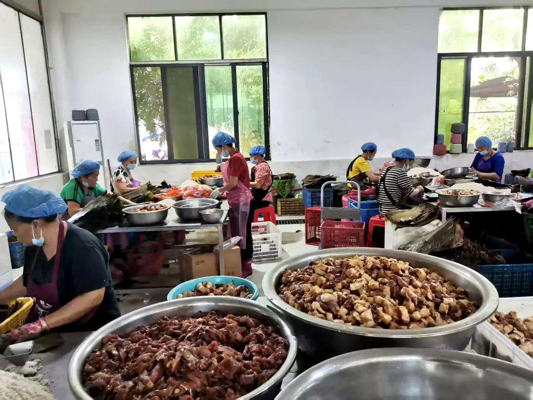 Workers wrap Hele zongzi ahead of the Dragon Boat Festival. /Photo provided to CGTN