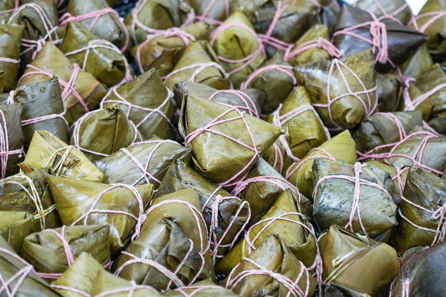 In Chinese culinary culture, zongzi, or sticky rice dumplings, have long been cherished for their distinctive shape and rich flavors. In south China's Hainan Province, a special variety known as Hele zongzi – which is produced in Hele Town in Wanning City – stands out as a renowned local delicacy, prized for its premium ingredients, meticulous preparation and soft, glutinous texture. It becomes particularly popular during the Dragon Boat Festival season.