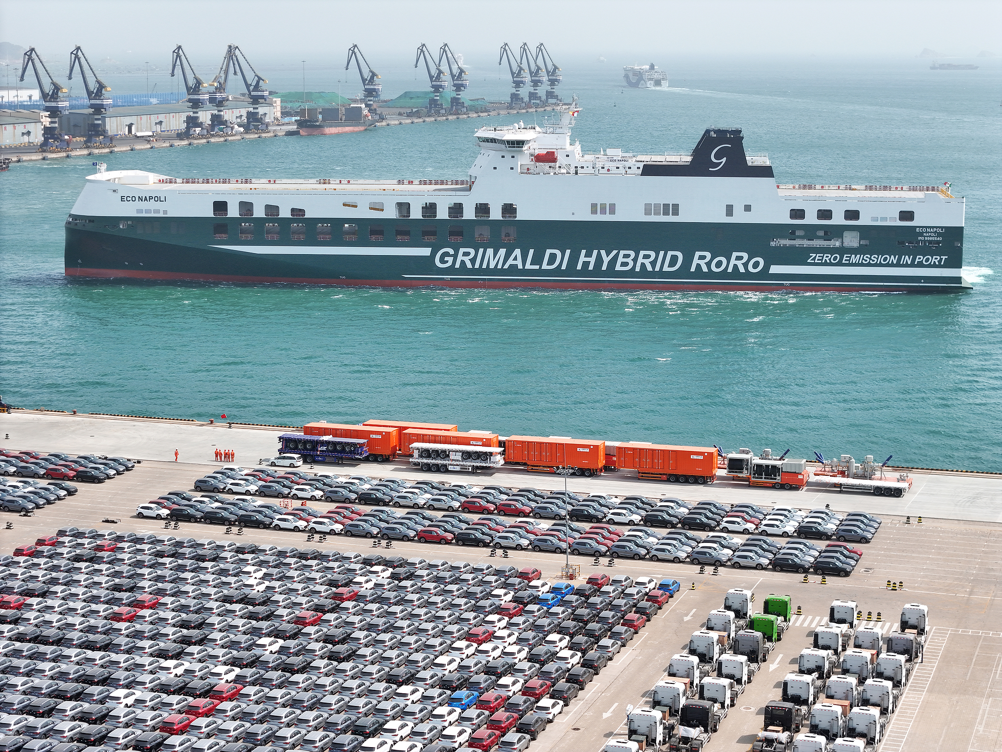 The world's largest eco-friendly ro-ro carrier for short sea shipping, Eco Napoli, in Yantai City, Shandong Province, east China, March 26, 2025. /VCG