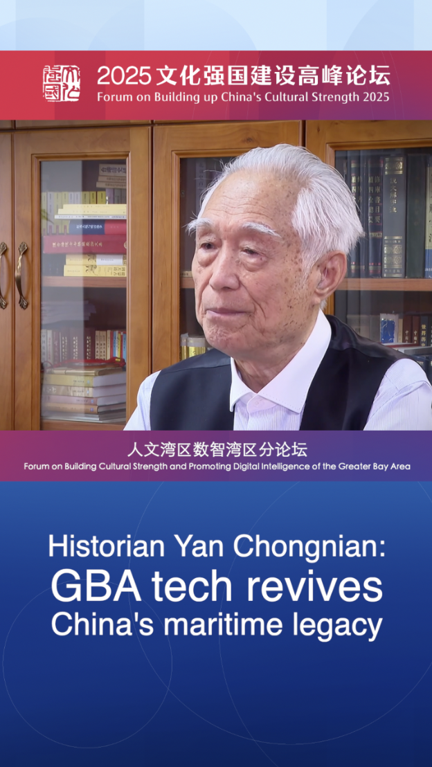 At the Forum on Building Cultural Strength and Promoting Digital Intelligence of the Greater Bay Area in south China's Shenzhen on May 27, 91-year-old historian Yan Chongnian spoke about how the region is leveraging cutting-edge technology to reclaim China's maritime cultural heritage.
