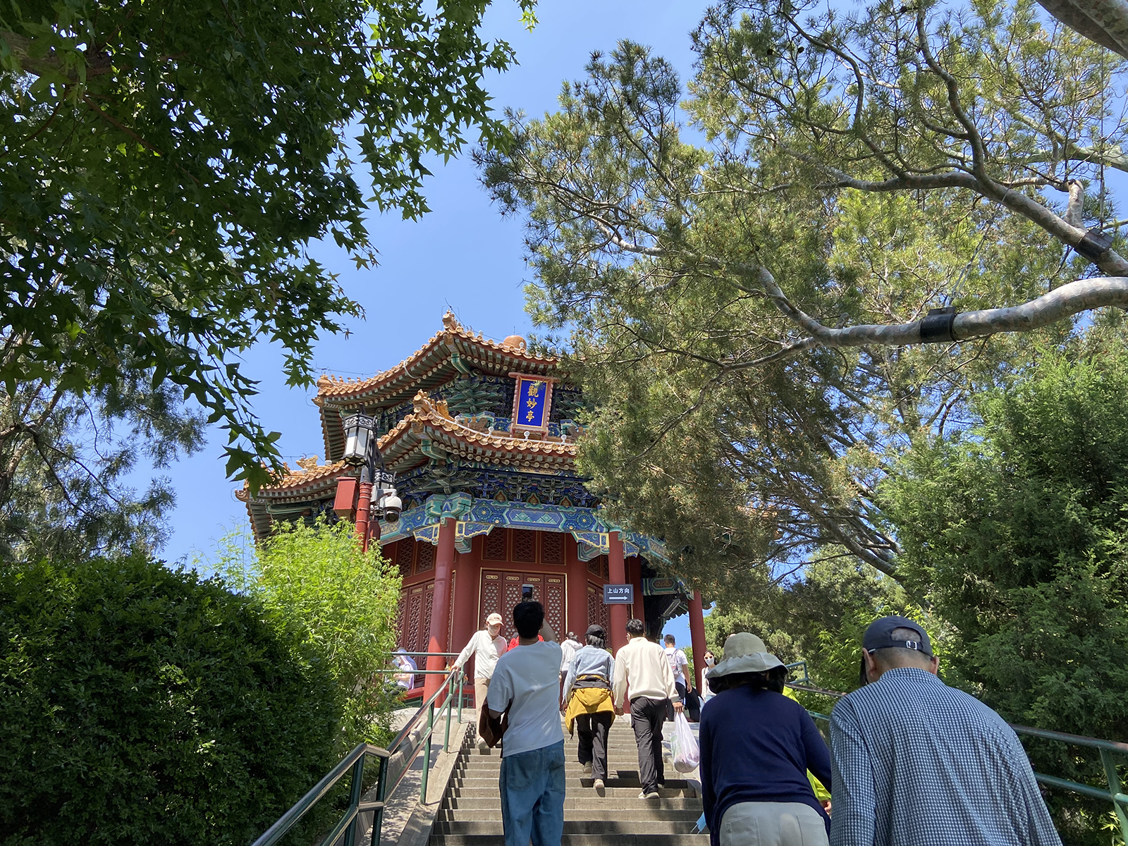 Visitors climb Jingshan Hill at Jingshan Park in Beijing on May 24, 2025. /CGTN