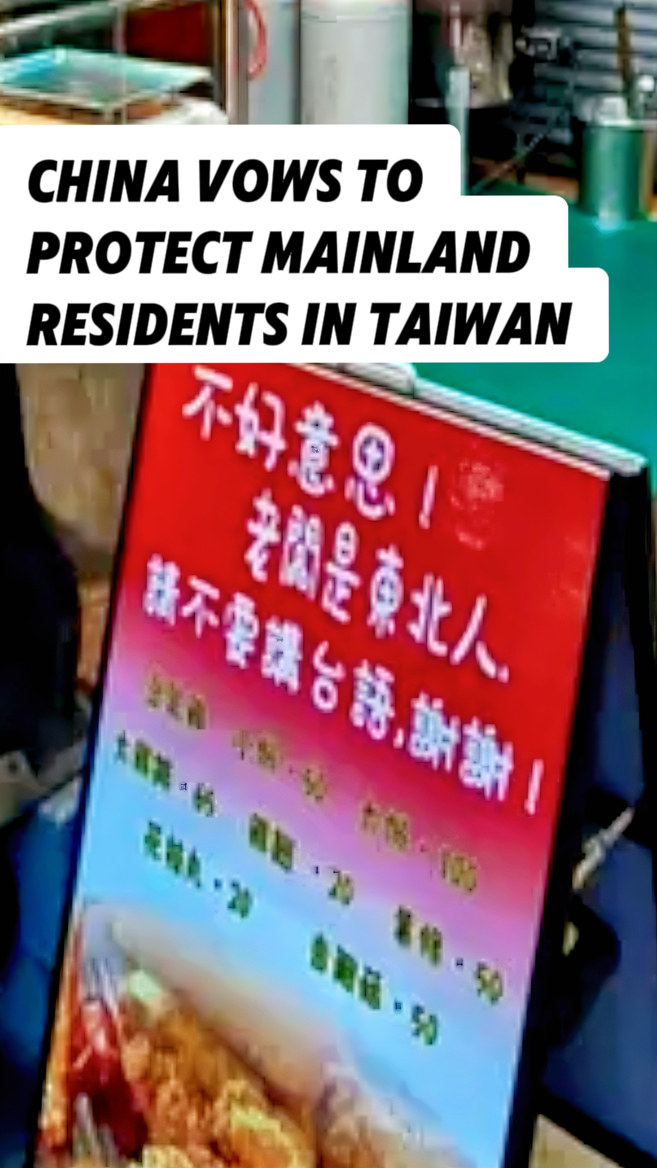 China vowed to protect mainland residents in Taiwan region after a dialect dispute forced a shop's closure. A spokesperson for the Taiwan Affairs Office of the State Council stated that the mainland will protect the lawful rights of cross-Straits families and take legal action against anyone persecuting mainland spouses under DPP policies.