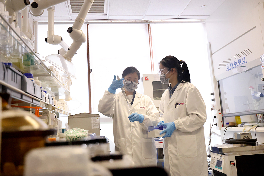Young scientists conduct a pharmaceutical experiment in a laboratory in Zhangjiang Science City, Pudong district, Shanghai, one of the most vigorous cities with a strong innovation capacity and well-developed academic and industrial chains in China, March 26, 2025. /CFP