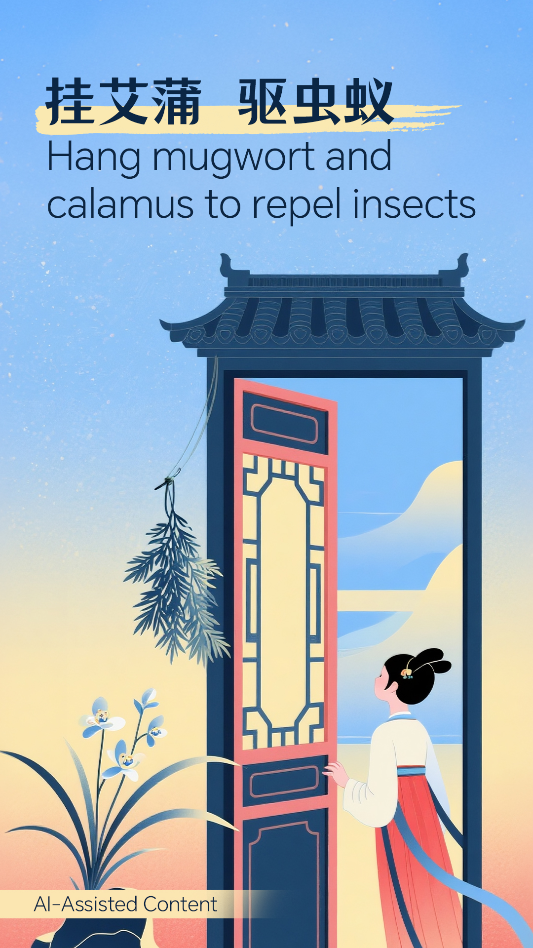 A key tradition involves hanging mugwort (Artemisia argyi) and calamus (Acorus calamus) on doors and windows. These aromatic herbs, valued in traditional Chinese medicine, release volatile oils that repel mosquitoes, flies and other pests. Their antimicrobial properties also help purify the air, aligning with the festival's theme of dispelling evil and preventing epidemics.