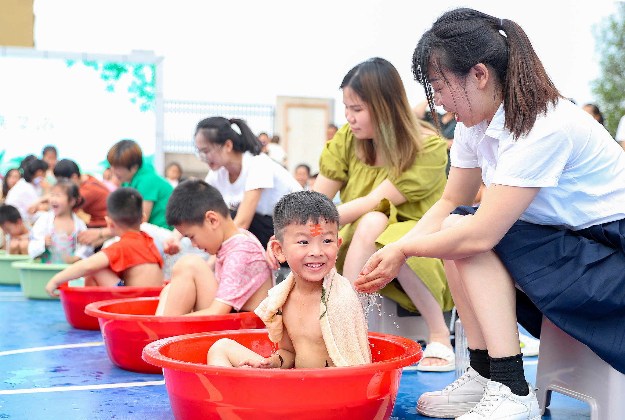 Children at Wuxing Kindergarten in Huaying City take a herbal bath to celebrate the Dragon Boat Festival, Guang'an City, southwest China's Sichuan Province, May 28, 2025. /VCG