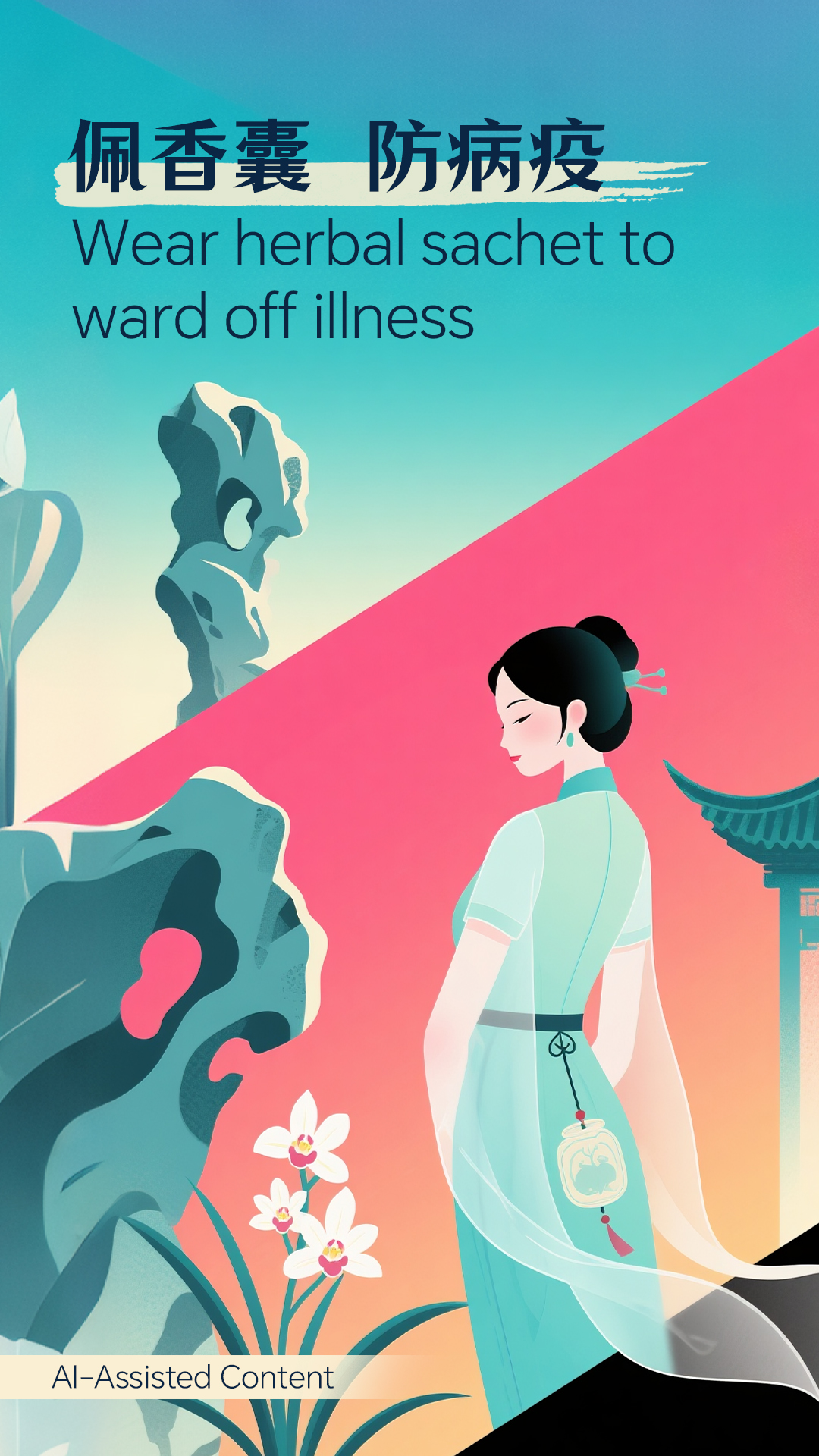 The practice of wearing embroidered sachets filled with herbs like clove, angelica root and Sichuan lovage rhizome dates back centuries. These herbs, known for their warming, antibacterial and antiviral qualities, were believed to strengthen the body's defenses against seasonal pathogens. The sachets' fragrant oils were thought to improve circulation and harmonize the digestive system – a blend of symbolic and practical health benefits.