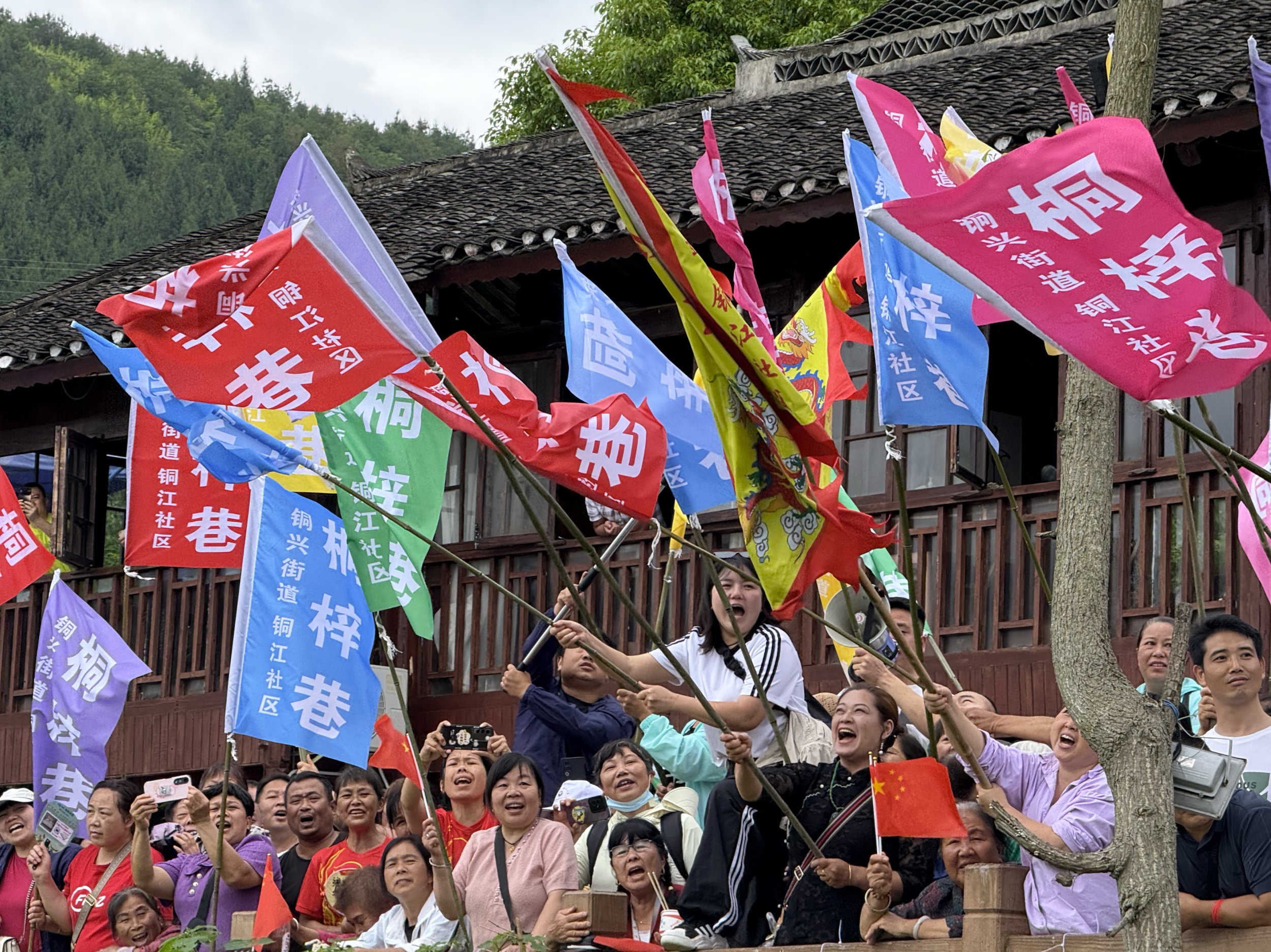 Spectators cheer for the dragon boat races in Tongren, southwest China's Guizhou Province, on May 30, 2025. /Photo provided to CGTN