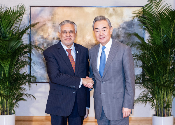 Chinese Foreign Minister Wang Yi (R) meets with Pakistani Deputy Prime Minister and Foreign Minister Mohammad Ishaq Dar in Hong Kong, south China, May 30, 2025. /Chinese Foreign Ministry