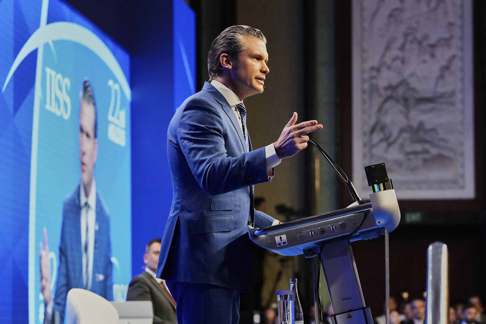 U.S. Defense Secretary Pete Hegseth delivers his speech at the 22nd Shangri-La Dialogue in Singapore, May 31, 2025. /CFP