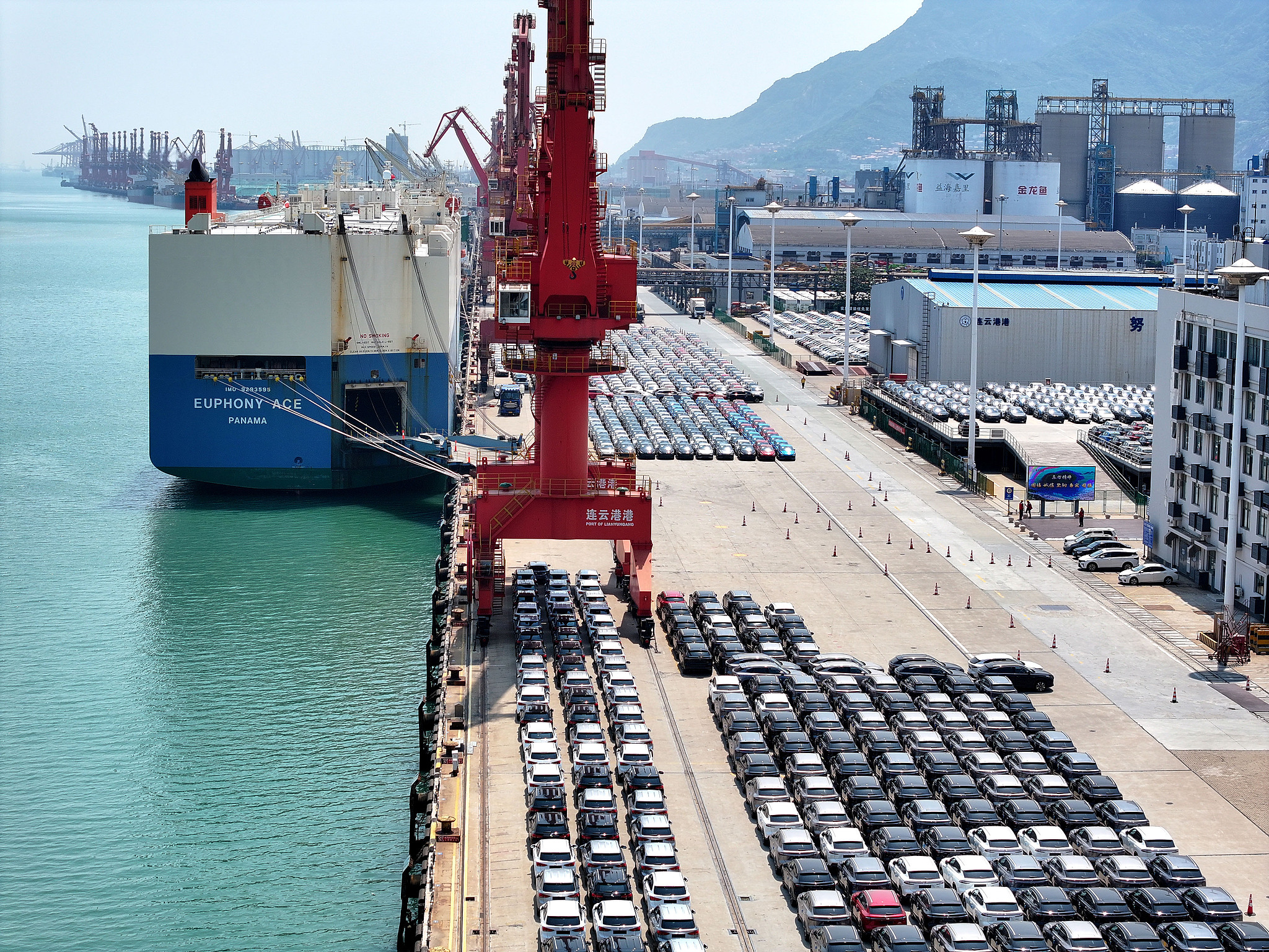 Cars lined up for export at the port of Lianyungang, Jiangsu Province, China, May 27, 2025. /VCG