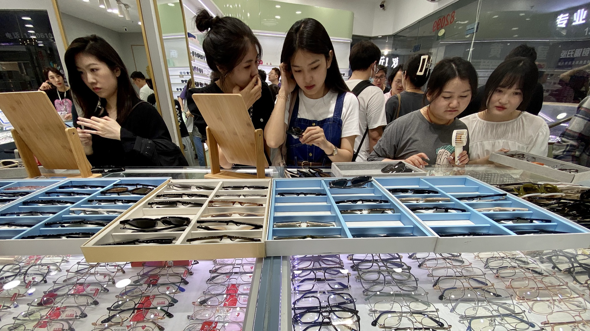 Customers at an eyewear trading market in Danyang City, east China's Jiangsu Province, May 27, 2023. /VCG