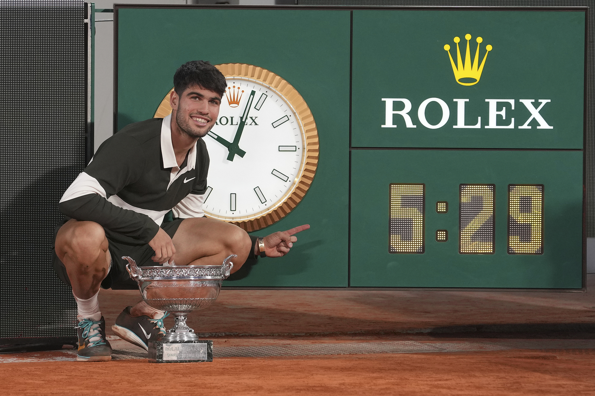 It was Spaniard's second straight French Open title, which he won in similar fashion to the first. Alcaraz trailed 2-1 in sets to Alexander Zverev in last year's final, and come from behind to claim a third major title with a five-set win against Novak Djokovic in the 2023 Wimbledon final.