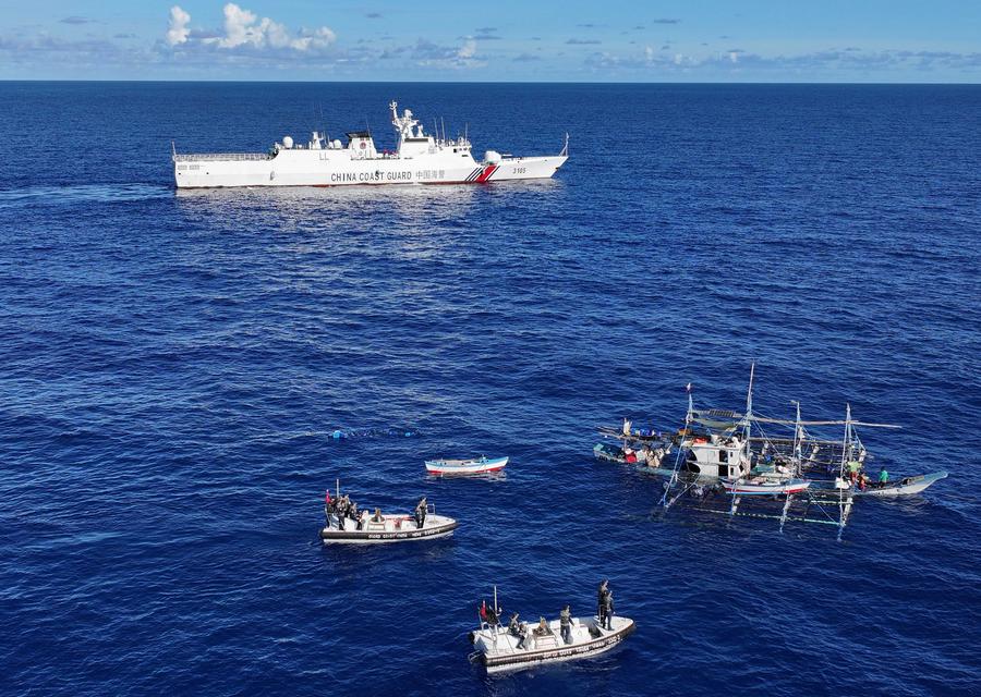 The China Coast Guard assists injured Filipino fishermen in waters adjacent to China's Huangyan Dao, June 29, 2024. /Xinhua