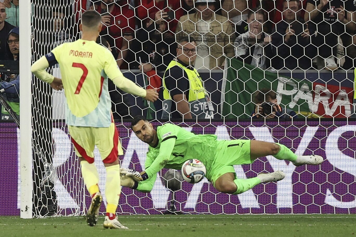Portugal's goalkeeper Diogo Costa saved Alvaro Morata's fourth penalty for Spain, then Ruben Neves converted his team's fifth to seal the win.