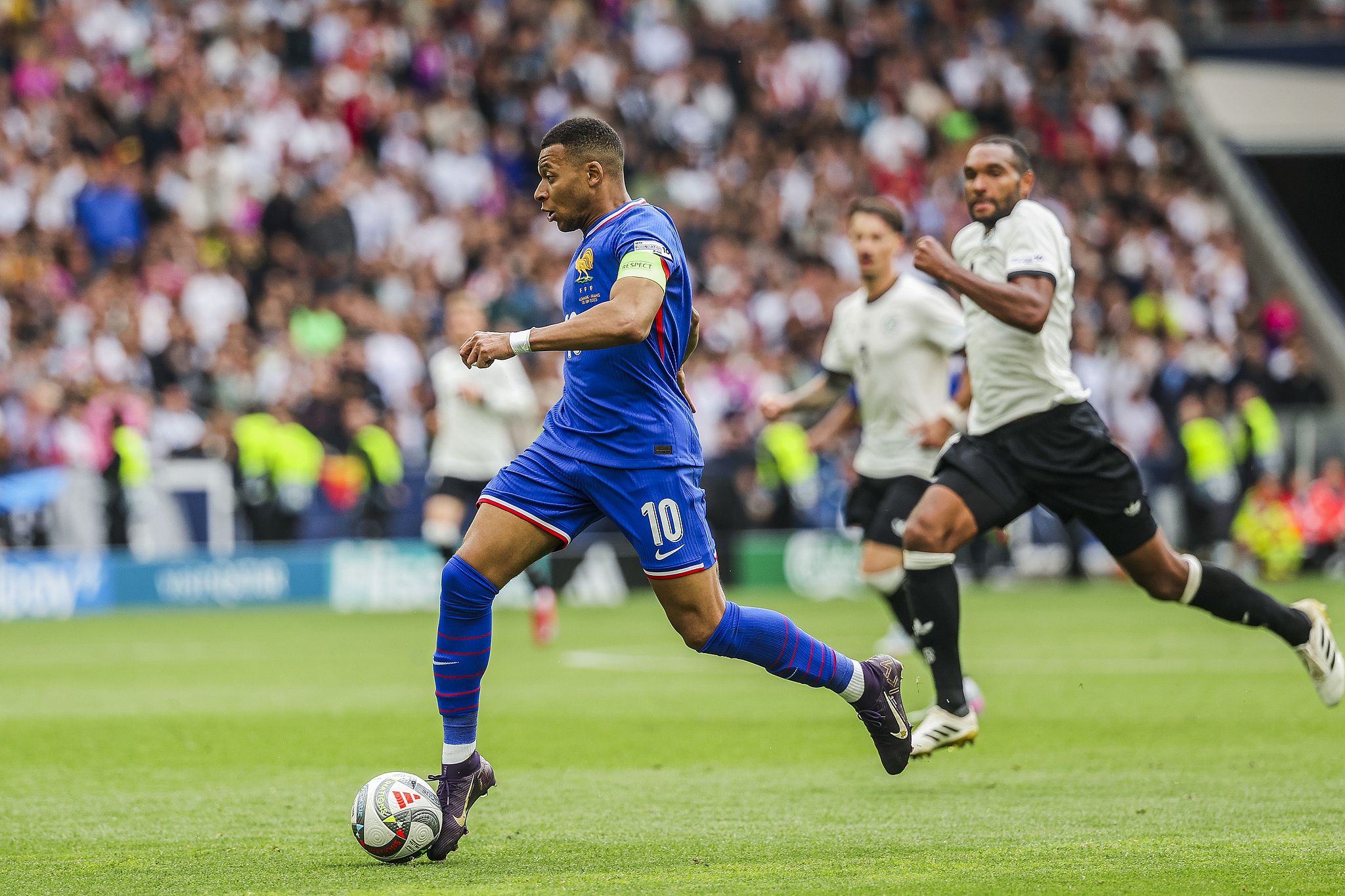 Kylian Mbappe (#10) of France dribbles in the UEFA Nations League third-place game against Germany at Mercedes-Benz Arena in Stuttgart, Germany, June 8, 2025. /VCG