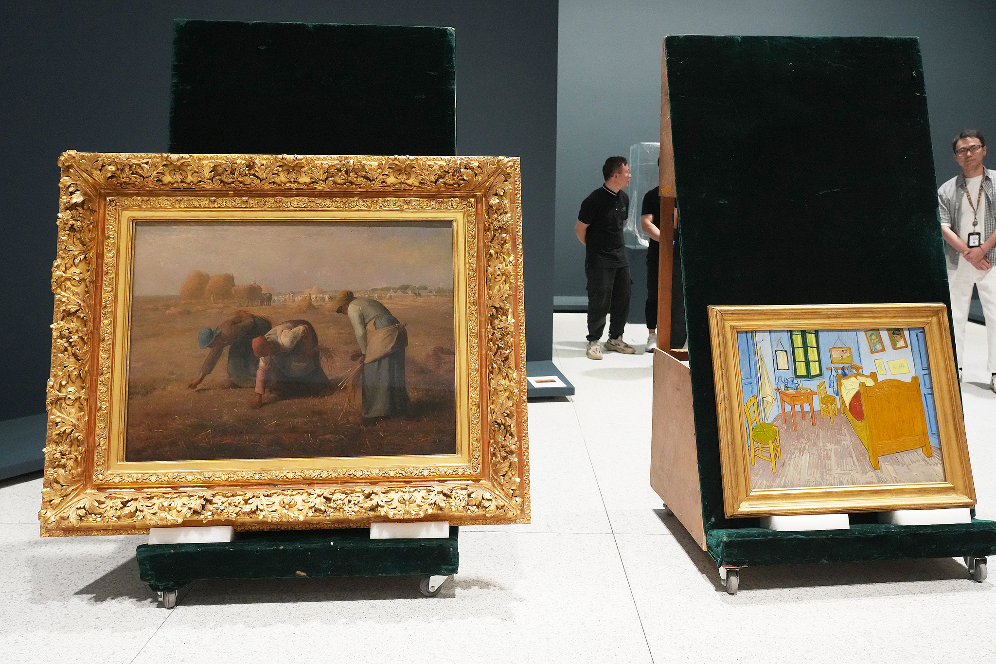 An unboxing ceremony to unveil masterpieces from the Orsay Museum in Paris was held on June 9 at the Museum of Art Pudong in Shanghai. The paintings "The Gleaners" by Jean-François Millet and "Bedroom in Arles" by Vincent van Gogh were unveiled in front of the press at the ceremony. These works are among over 100 authentic pieces by Western art masters, including Vincent van Gogh, Oscar-Claude Monet, Jean-François Millet and Paul Cézanne, which will be displayed at an exhibition titled "Paths to Modernity: Masterpieces from the Musée d'Orsay, Paris." The exhibition is set to open on June 19 and will showcase the largest collection of Orsay Museum in China to date.