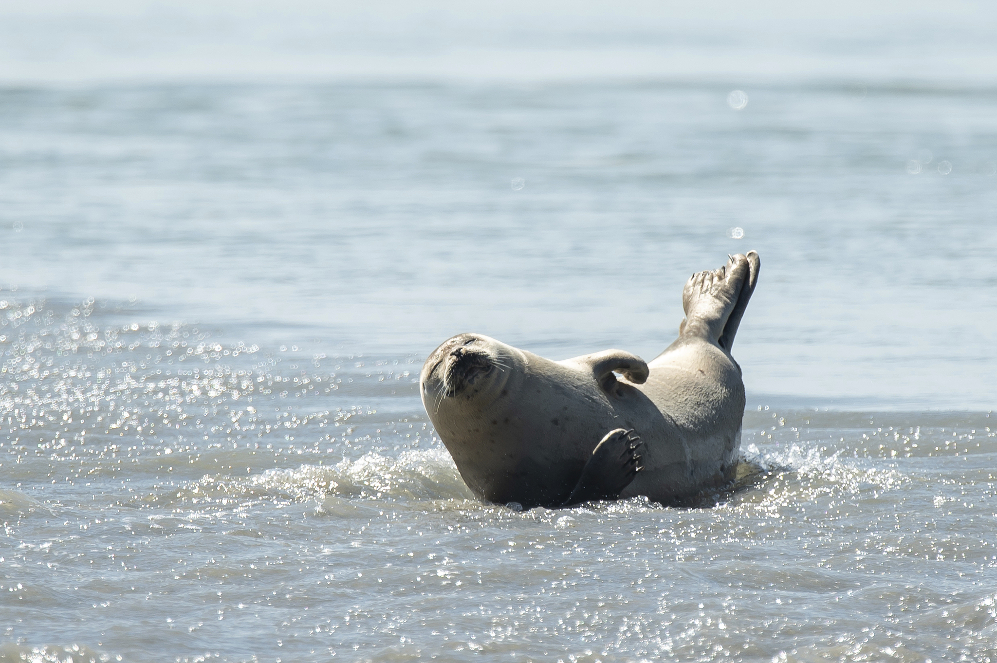 A seal lies in the water in the sunshine, Plage Des Phoques, France, 22 August 2023. /VCG