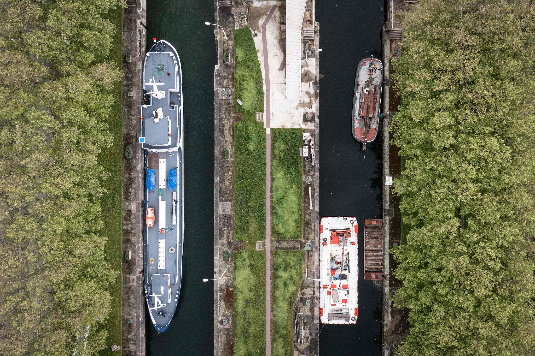 Emile-Mathis high school's boat during a maritime transport course for the students in Strasbourg, France, May 10, 2023. /VCG