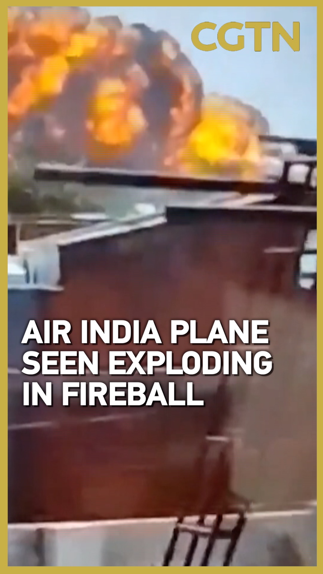 A dramatic moment shows an Air India plane erupting into a fireball after crashing en route to London.