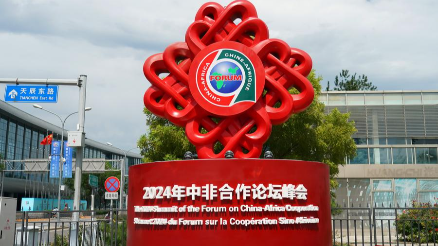 The logo of the 2024 Summit of the Forum on China-Africa Cooperation (FOCAC) near China National Convention Center in Beijing, capital of China, Sept. 1, 2024. /Xinhua