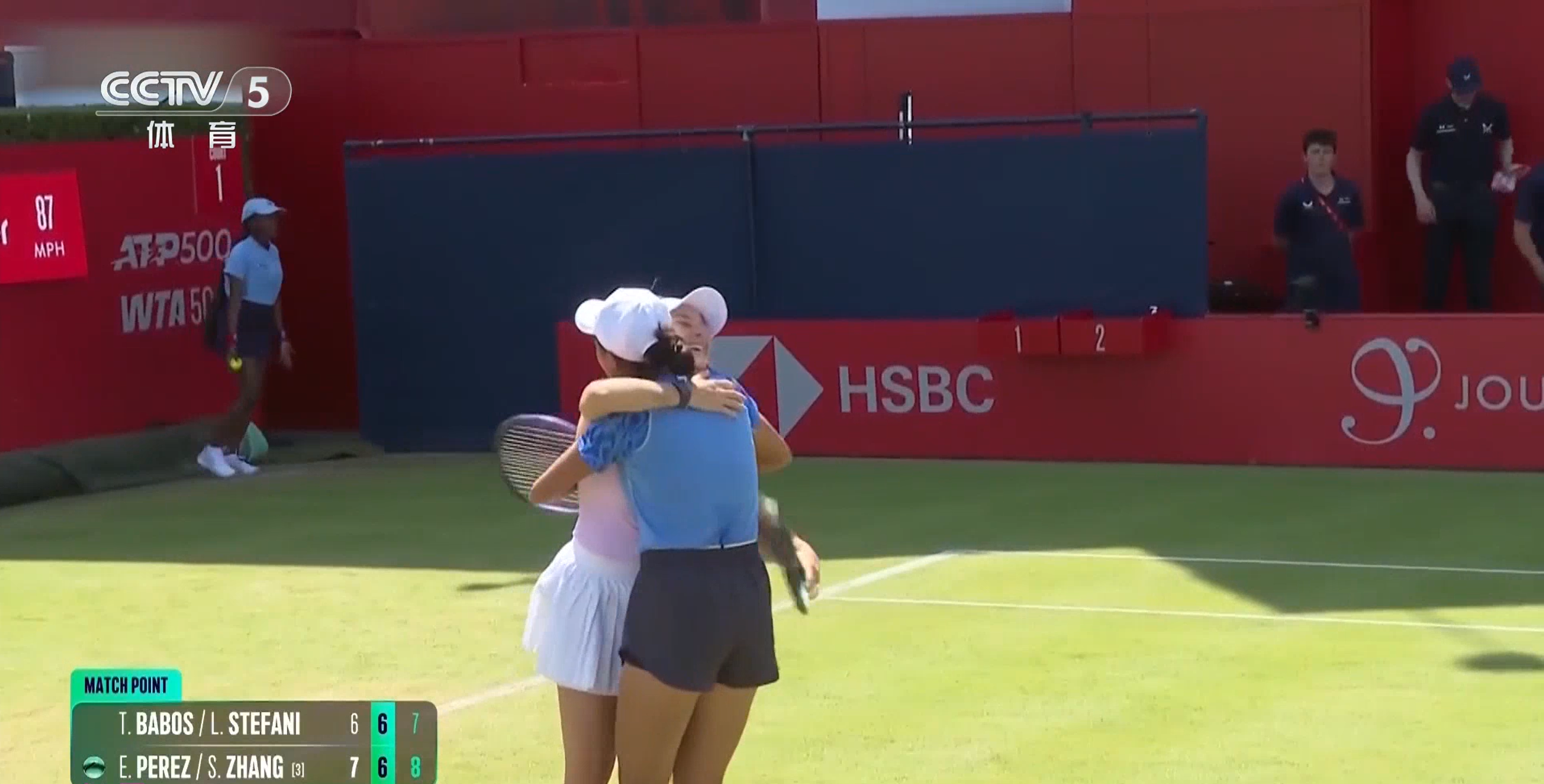 Zhang sent a forehand volley to tie the contest 5-5 in the opener. The set went into the first tiebreak where the third seeds won it 7-4 when Babos' volley found the net.
