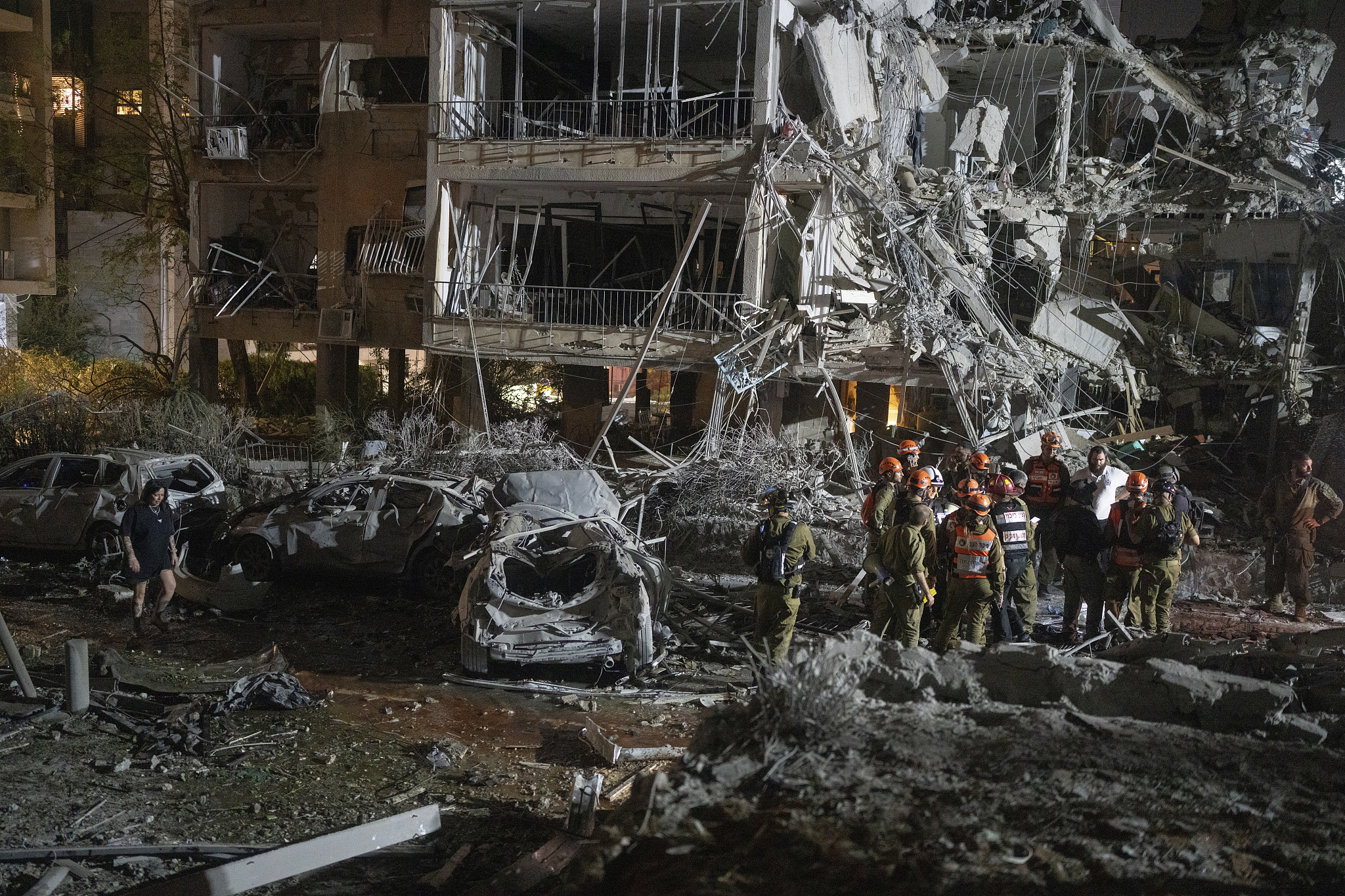 Israeli rescue forces near a building damaged by an Iranian ballistic missile attack in Ramat Gan, Israel, on Friday, June 13, 2025. /CFP