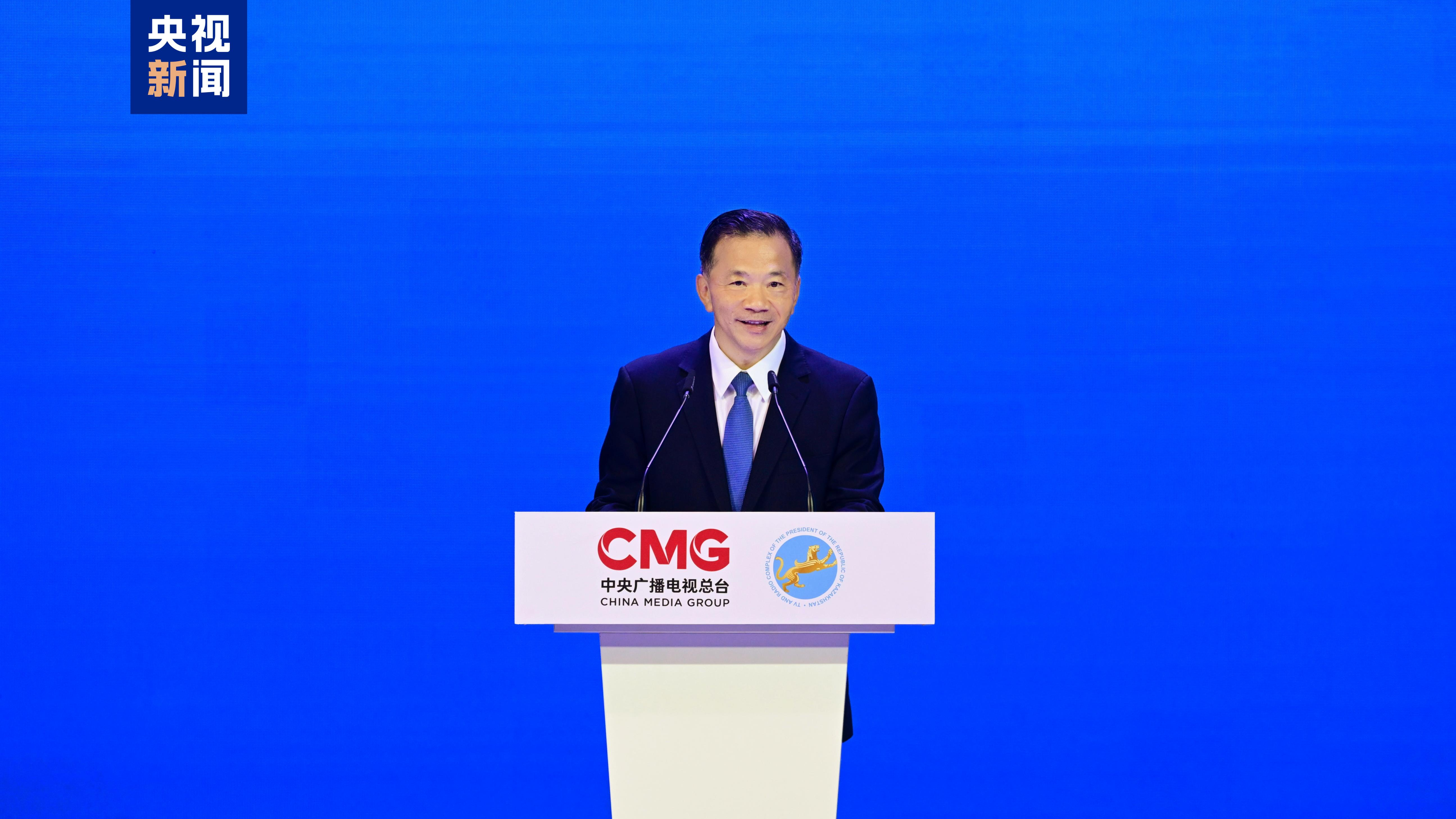 CMG President Shen Haixiong delivers a speech at the 2025 China-Central Asia people-to-people exchange event, Astana, Kazakhstan, June 16, 2025. /CMG