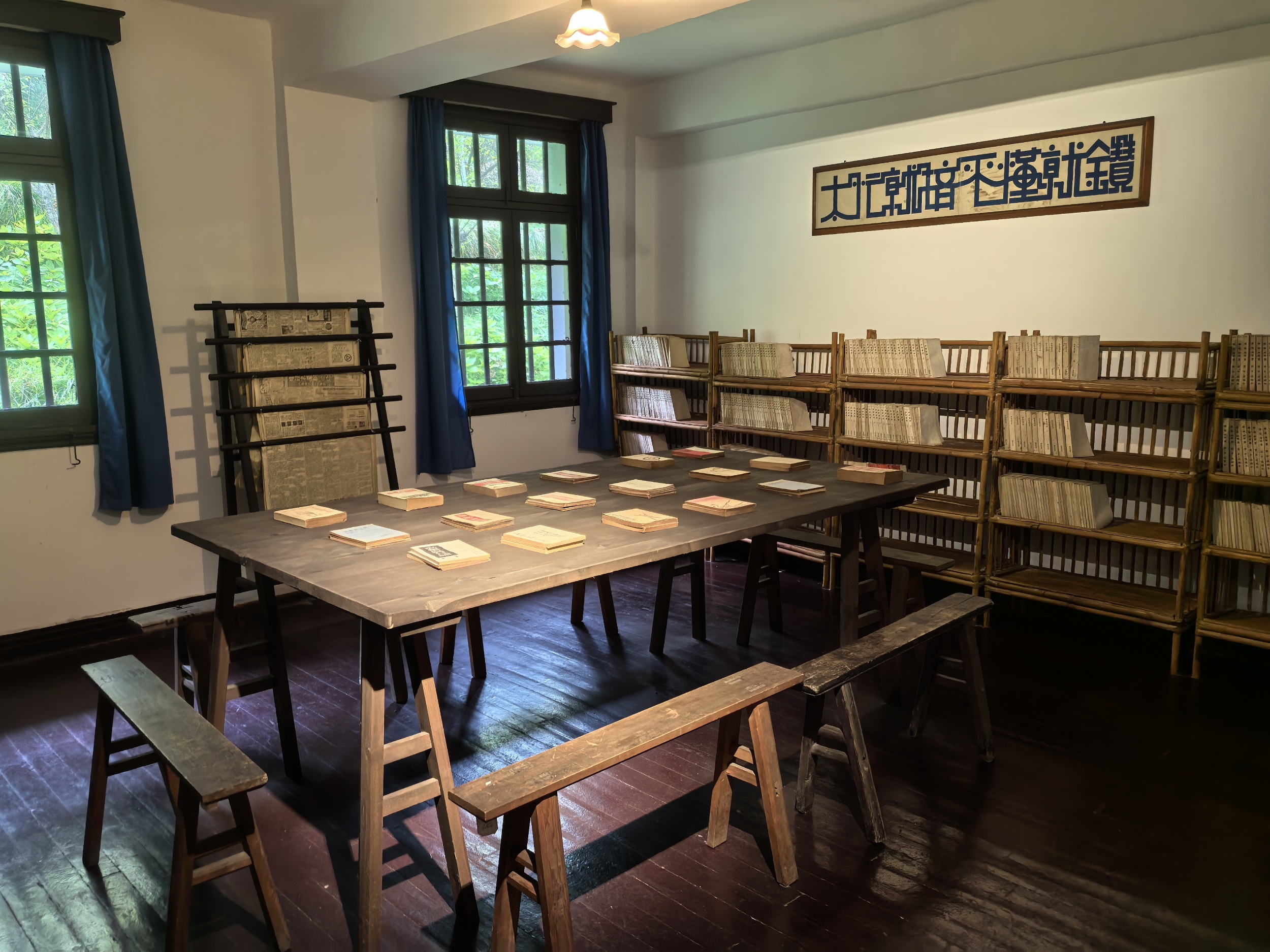 A reading room at the Eighth Route Army Office during the War of Resistance against Japanese Aggression is seen at Hongyan Village in southwest China's Chongqing. /CGTN