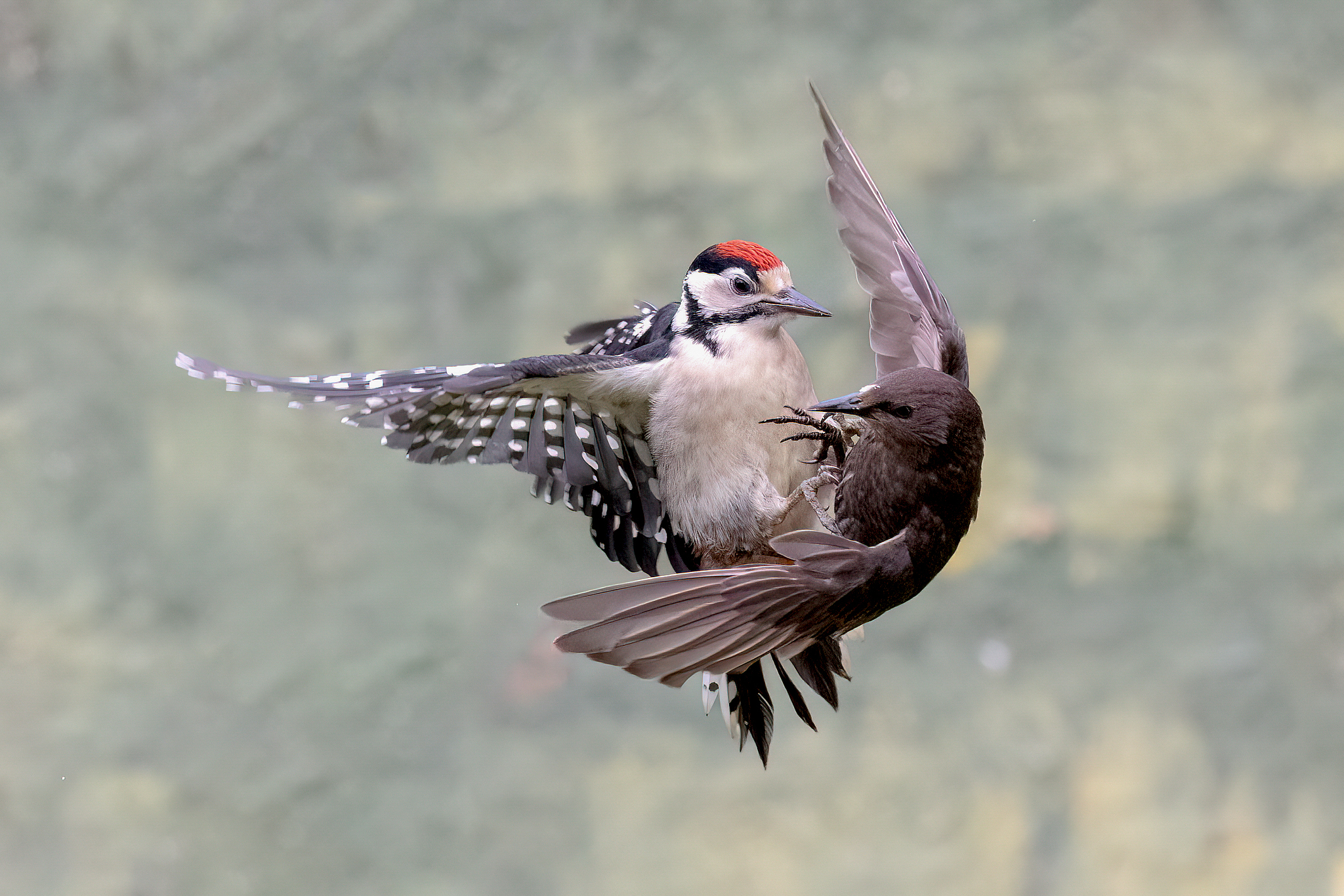A woodpecker and a starling clash on a tree in Wigan, the UK, June 9, 2025. /VCG