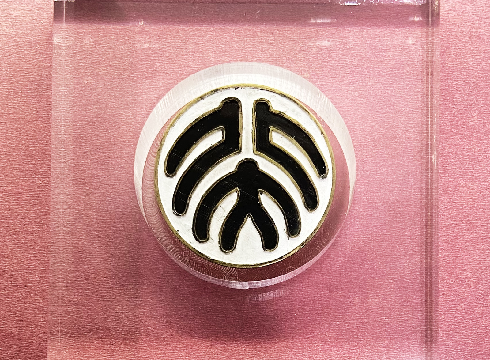 The emblem designed by renowned writer Lu Xun for Peking University is on display at the Red Building in Beijing. The two characters "Bei Da" (Peking University) are placed vertically on the emblem, symbolizing "backbone." This design conveys hopes of Peking University's graduates becoming backbones to promote national democracy and progress. /CGTN