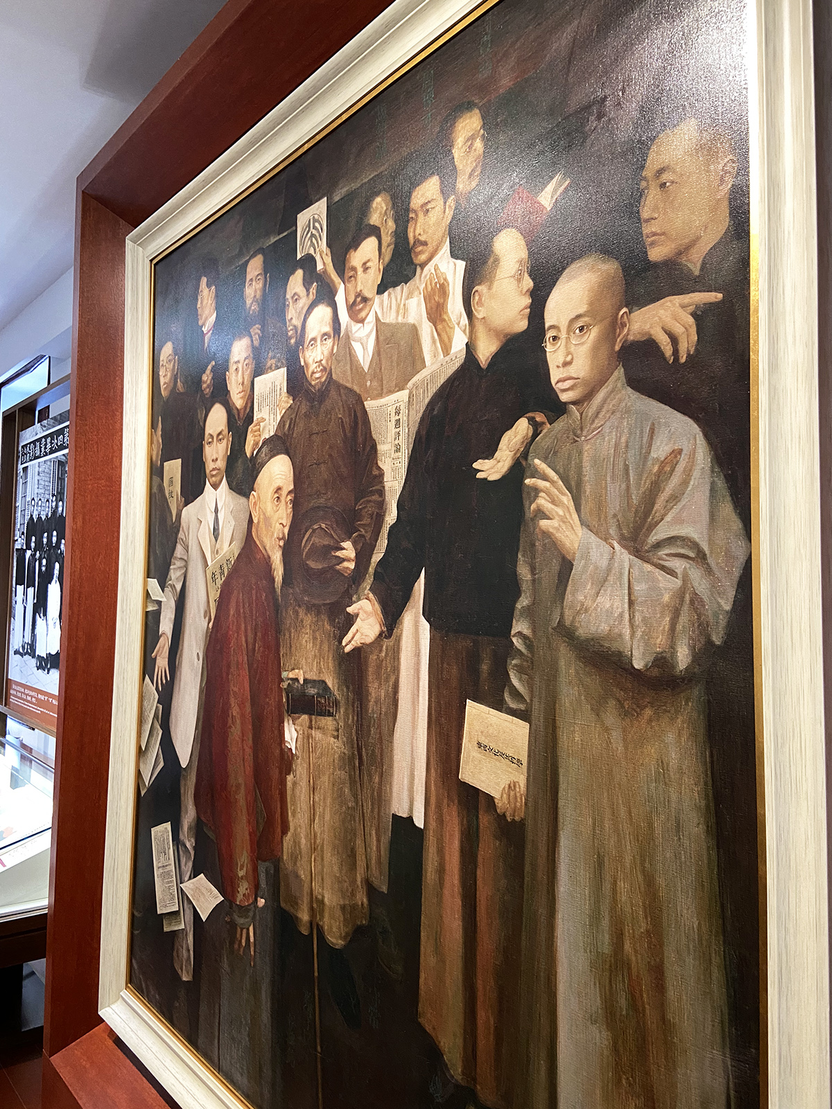 A painting depicting the pioneers of the New Culture Movement is on display at the Red Building in Beijing. /CGTN