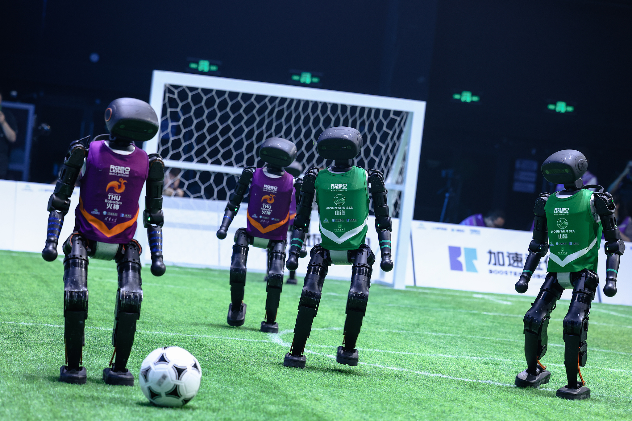 Four teams of humanoid robots faced off in a fully autonomous 3-on-3 football game powered entirely by artificial intelligence in Beijing on Saturday night.