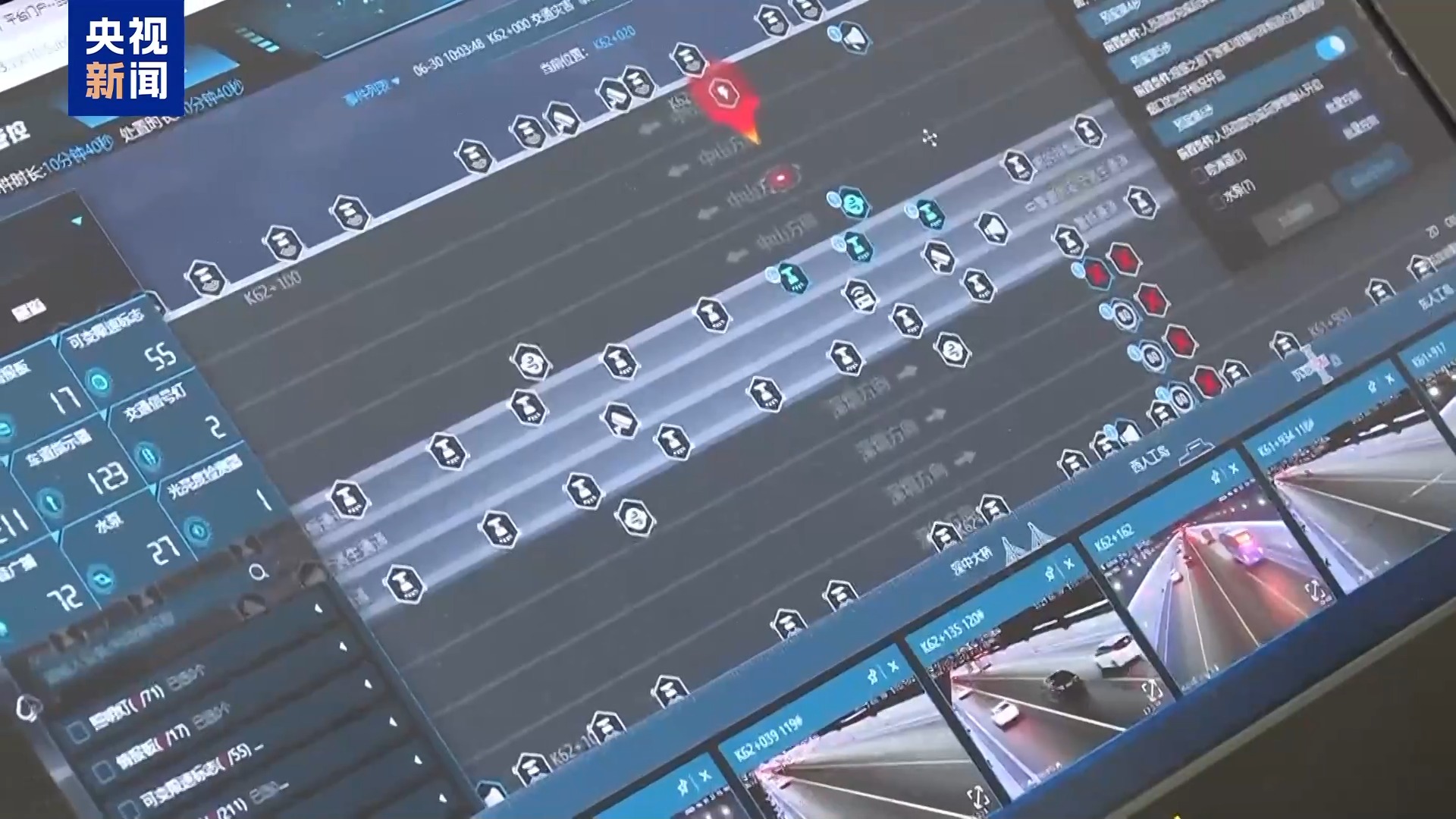 A digital twin platform has been adopted to monitor the link's dynamic operation from a macro perspective. It provides a 3D digital model of the link, displaying real-time conditions such as vehicle trajectories and speeds. The platform can quickly lock the abnormal area based on the abnormal traffic flow.