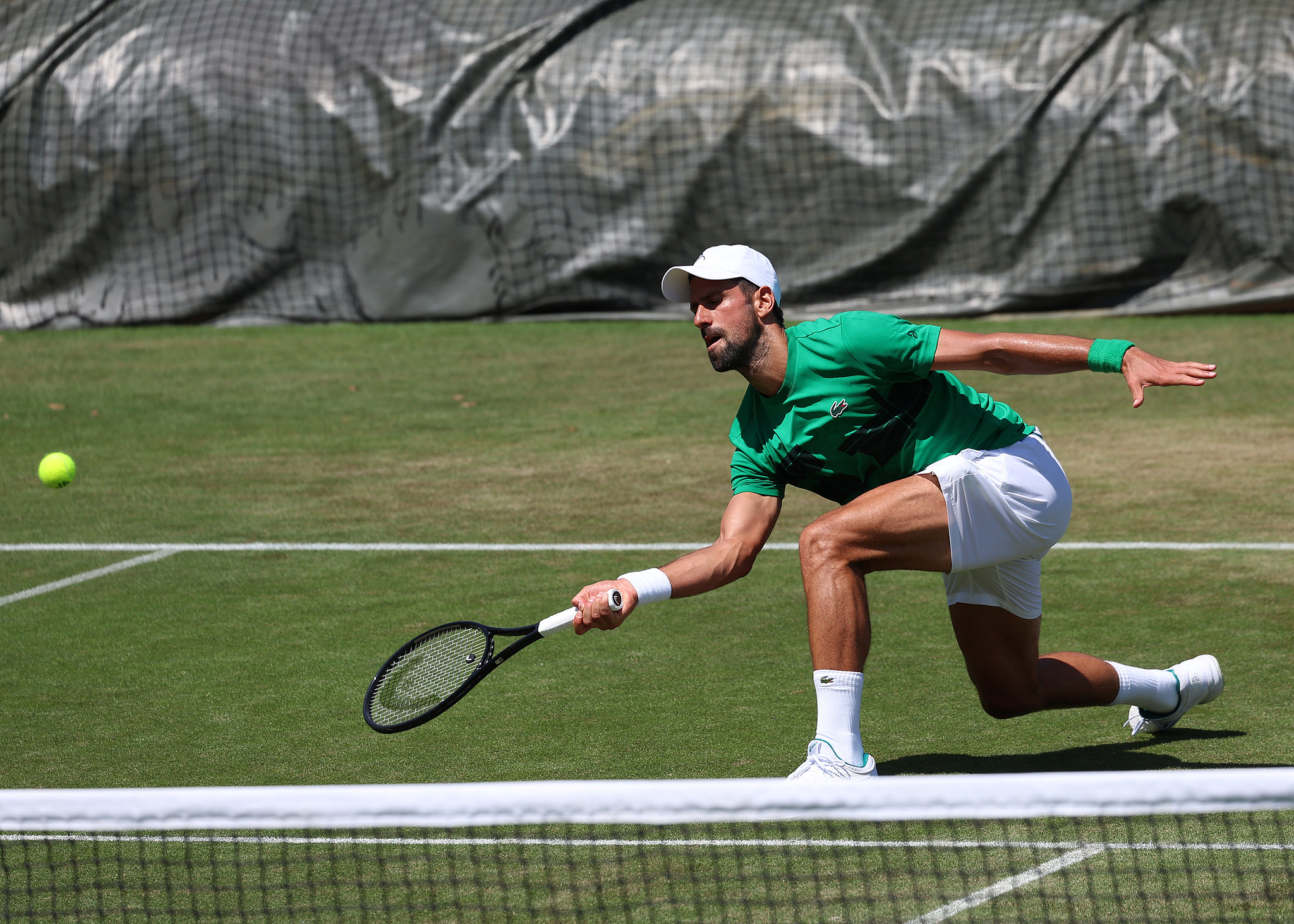 Novak Djokovic of Serbia hits a shot in practice ahead of the Wimbledon Championships at the All England Club in London, England, June 29, 2025. /VCG