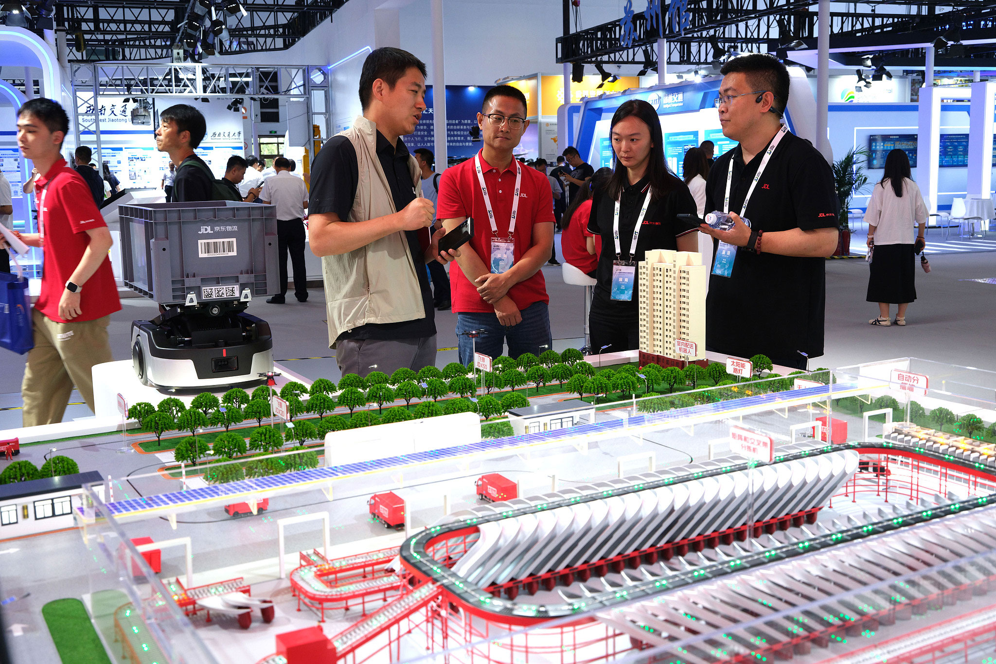 A scaled mock-up of a logistics center is displayed at the International Exhibition on Transport Technology and Equipment in Beijing, July 3, 2025. /VCG