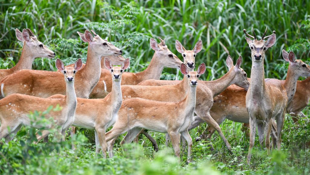 Native to Hainan Province, the Hainan Eld's deer is a national first-class protected animal in China and is categorized as an endangered species by the International Union for Conservation of Nature. Established in Hainan in the 1970s, the Bangxi nature reserve is one of the most important habitats for the Hainan Eld's deer. Through ongoing conservation efforts, the reserve has become a beautiful natural habitat for the deer. Currently, there are over 200 Hainan Eld's deer living there.