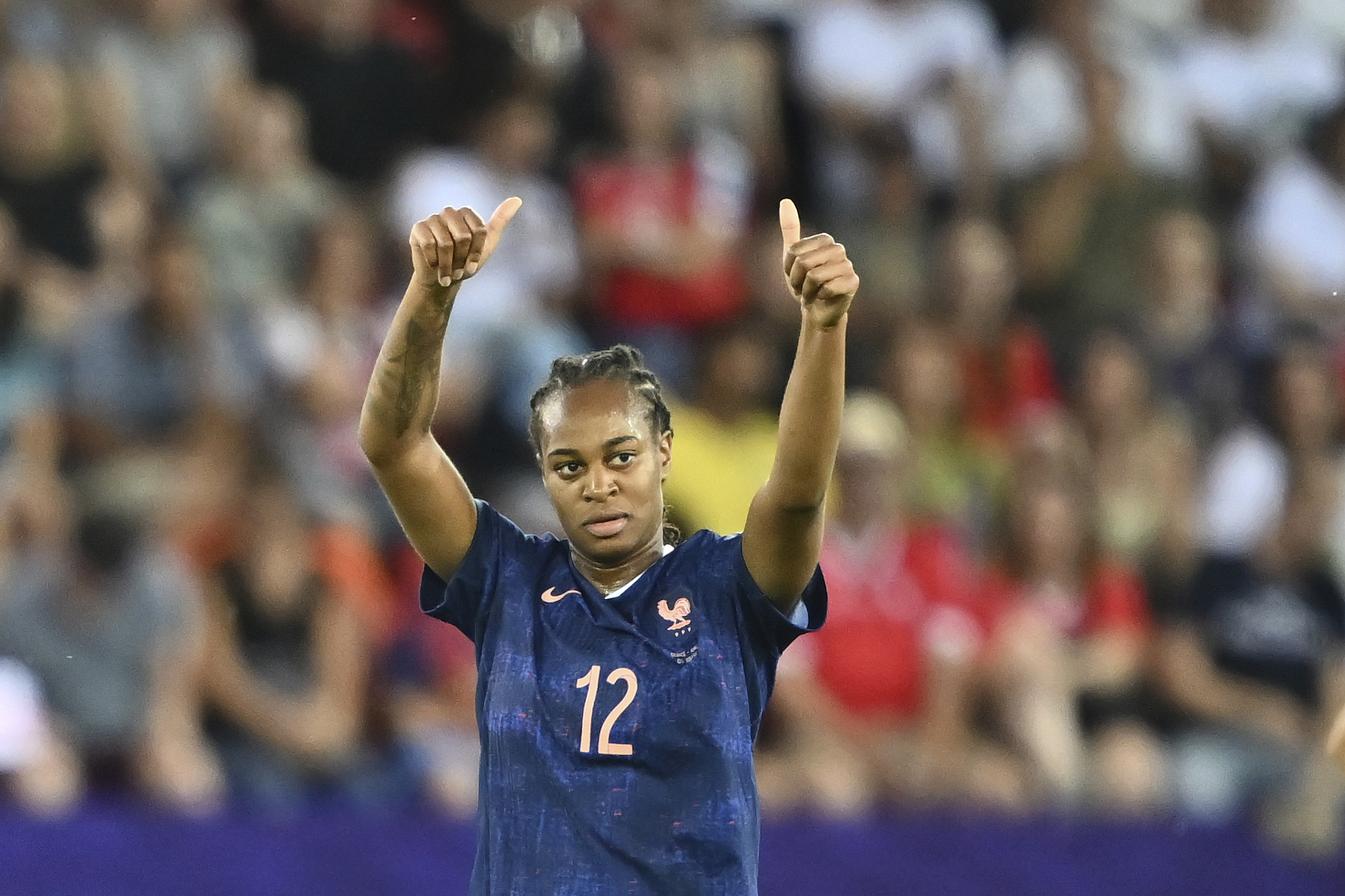 Marie-Antoinette Katoto and Sandy Baltimore scored two quickfire goals towards the end of the first half as France recorded a ninth straight win and stunned the reigning champions.