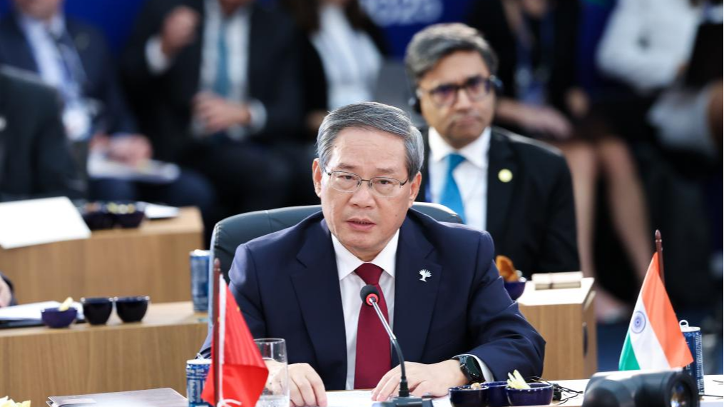 Chinese Premier Li Qiang addresses the plenary session of "Peace and Security and Reform of Global Governance" of the 17th BRICS Summit in Rio de Janeiro, Brazil, July 6, 2025. /Xinhua