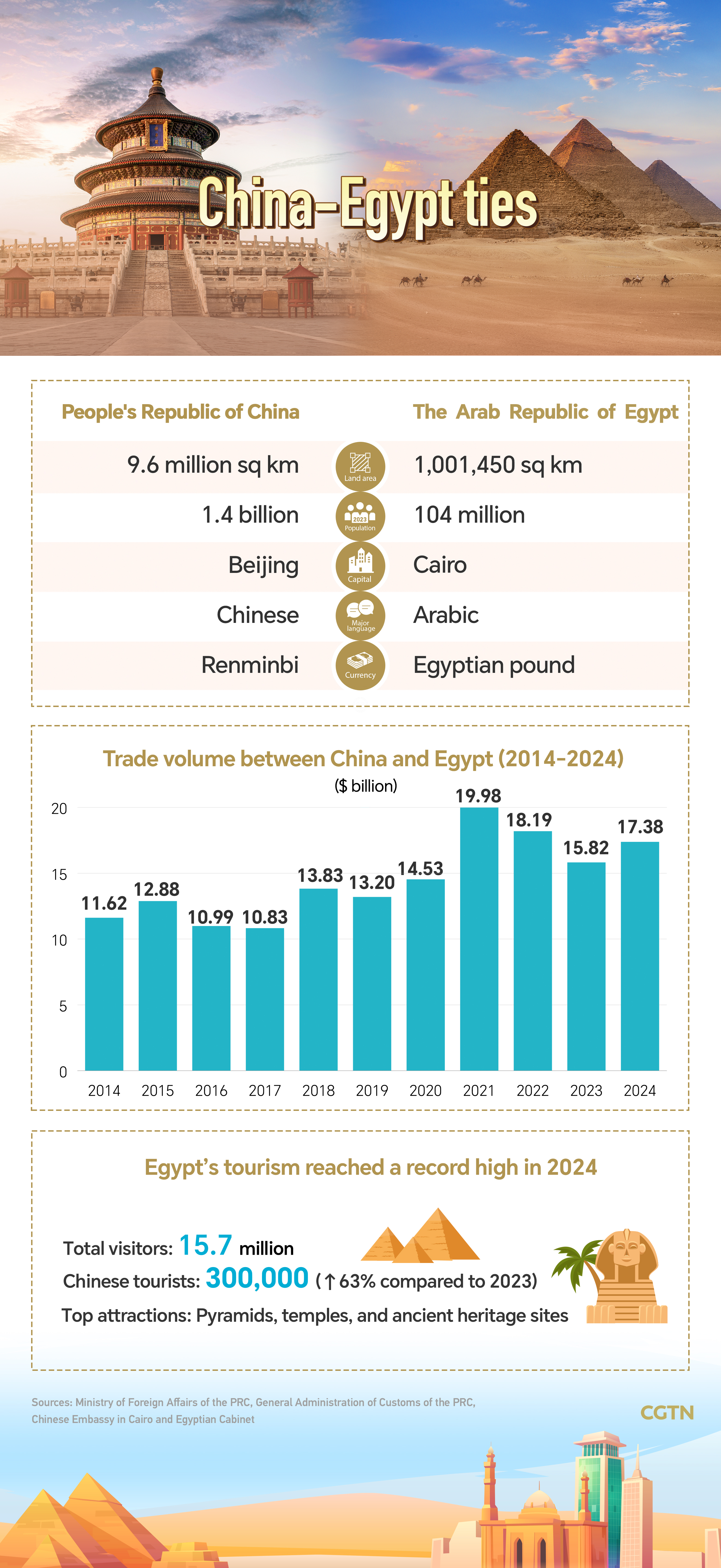 In 2024, the trade volume between China and Egypt reached $17.38 billion. Approximately 300,000 Chinese tourists visited Egypt, according to a mid-December statement from the Chinese Embassy in Egypt.