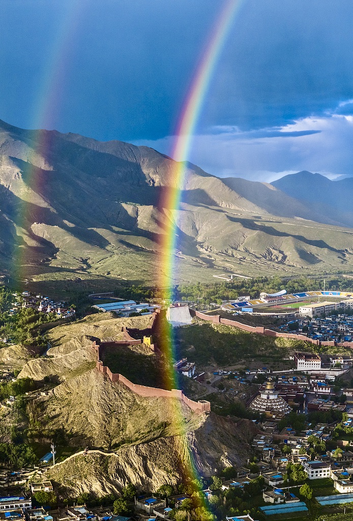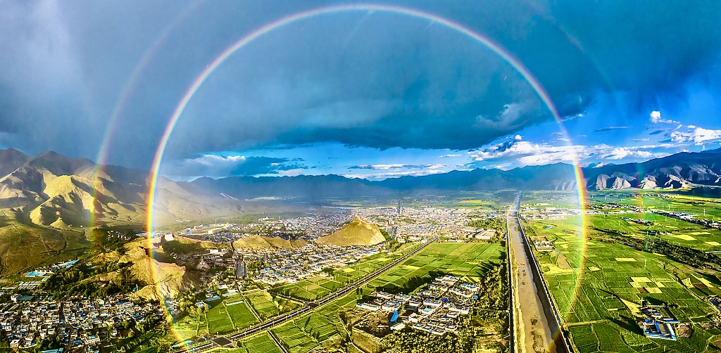 After a summer rain shower in Xizang's Gyantse County, a rare full-circle rainbow arched gracefully over the Palcho Monastery. Nestled among the mountains, the historic monastery stood serenely beneath the luminous arc. Full-circle rainbows are often seen as symbols of completeness and success — auspicious signs that bring blessings and good fortune.