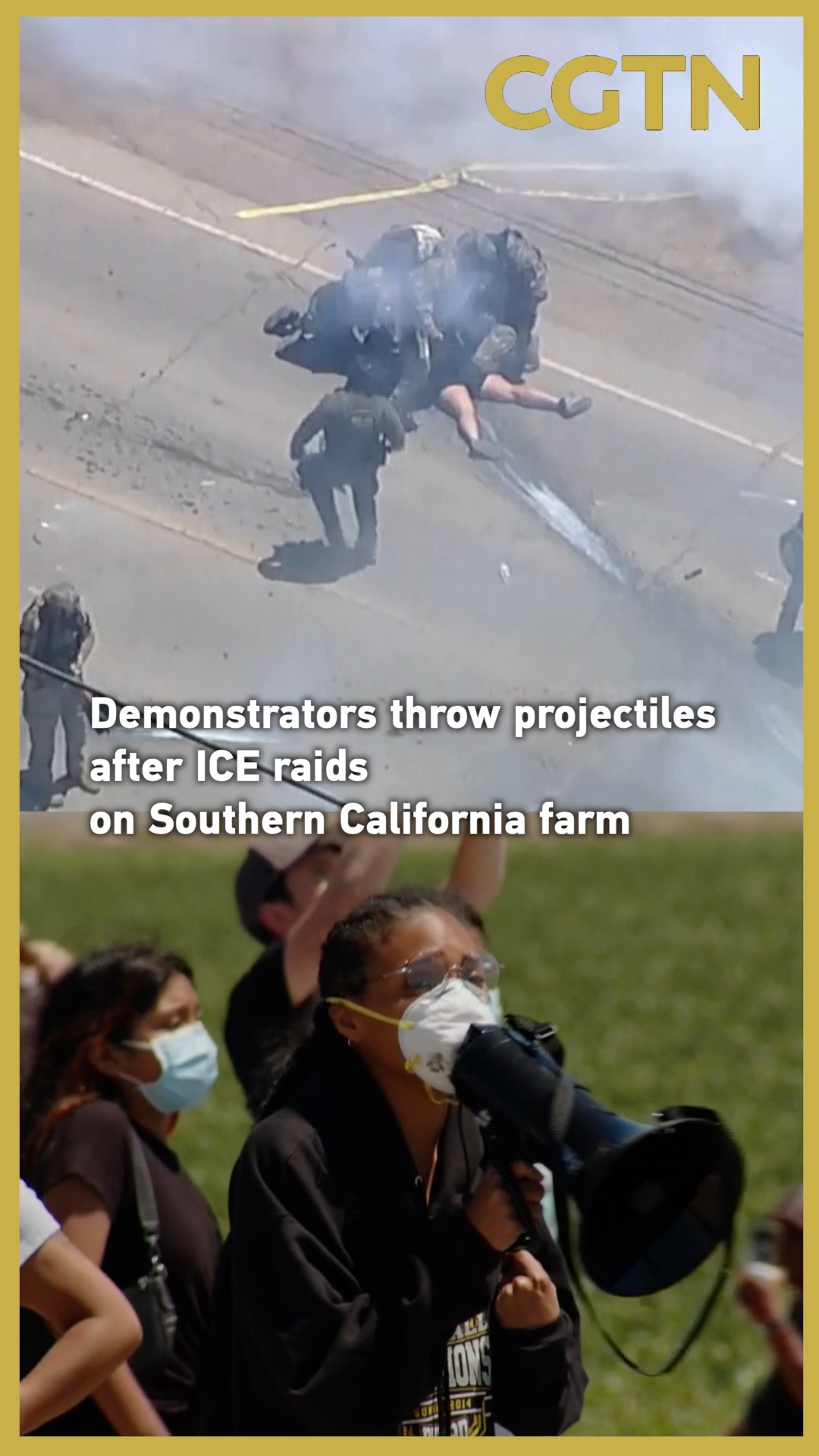 A confrontation erupted on Thursday between protesters and federal officials carrying out a raid on a Southern California farm. Vehicles from Border Patrol and U.S. Customs and Border Protection blocked the road in a largely agricultural area of Camarillo, California, lined with fields and greenhouses. Military-style vehicles patrolled and a helicopter flew overhead.