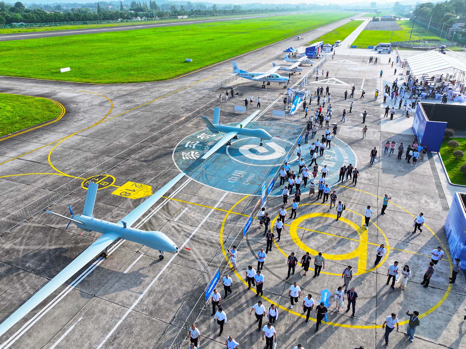 Visitors view an aircraft exhibition in Chongqing on July 11, 2025 during the first Western China Low-Altitude Economy Expo. /IC