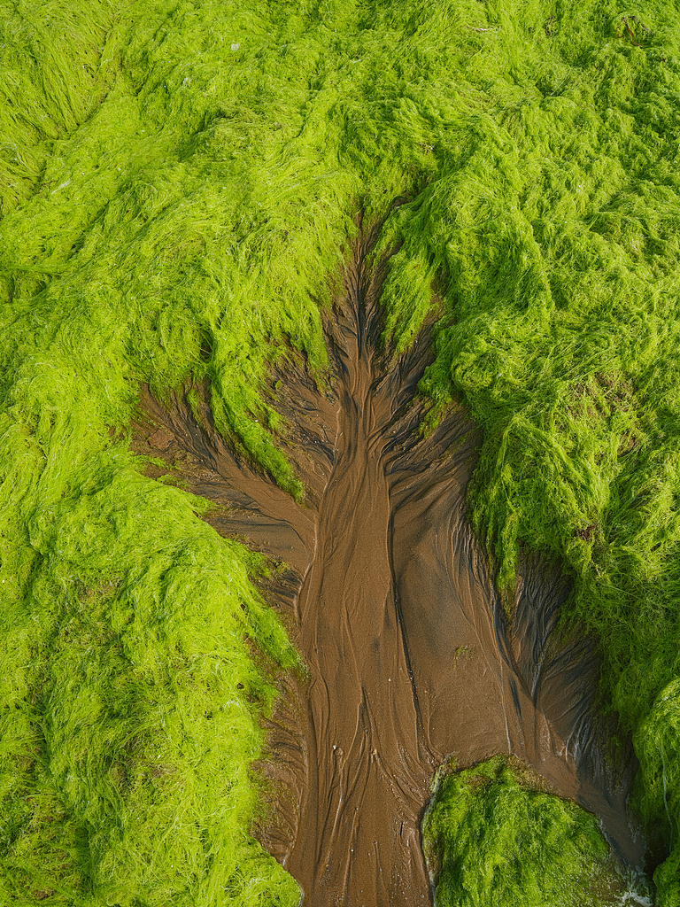 In Qingdao, Shandong Province, the summer tides bring more than just ocean waves – they deliver a serene, living artwork. As the tide rises, clusters of branched string lettuce drift gently with the currents like emerald streamers. When the tide ebbs, they linger on the mudflats, merging with the silhouettes of trees and ripples in the sand to form a natural tableau. This seasonal spectacle has become a symbolic expression of ecological harmony.