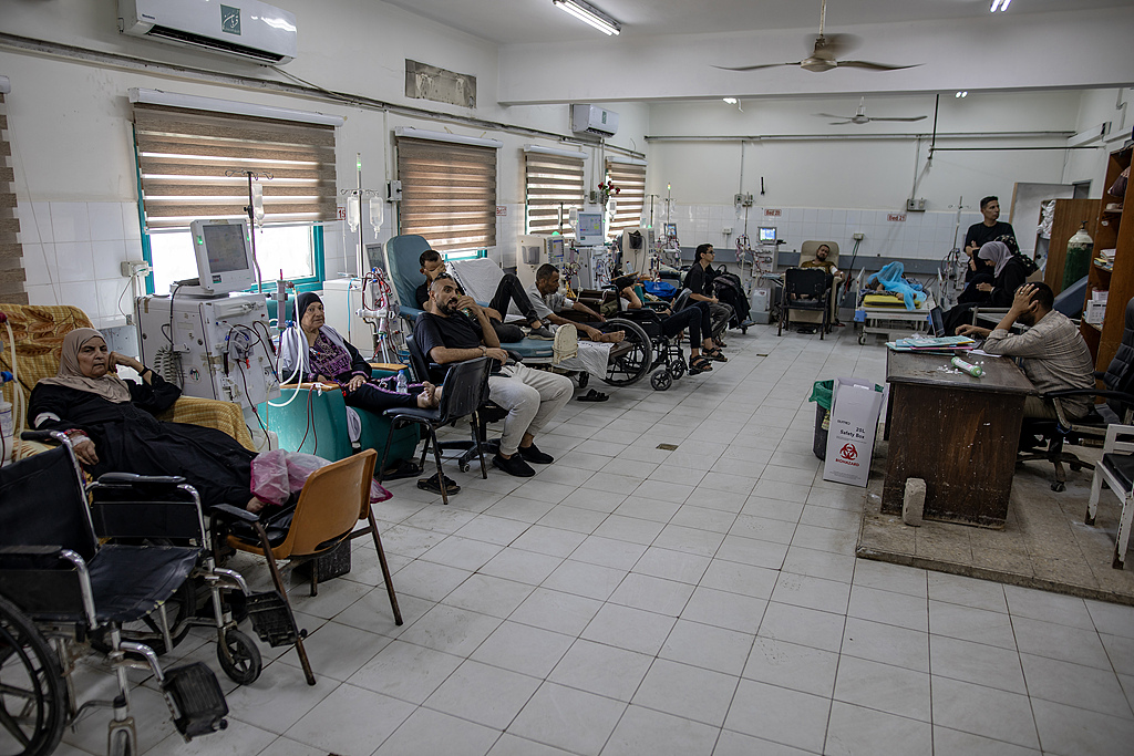 Palestinians receive dialysis for only half an hour a day after most dialysis machines broke down at Al-Shifa Hospital in northern Gaza, July 13, 2025. /VCG