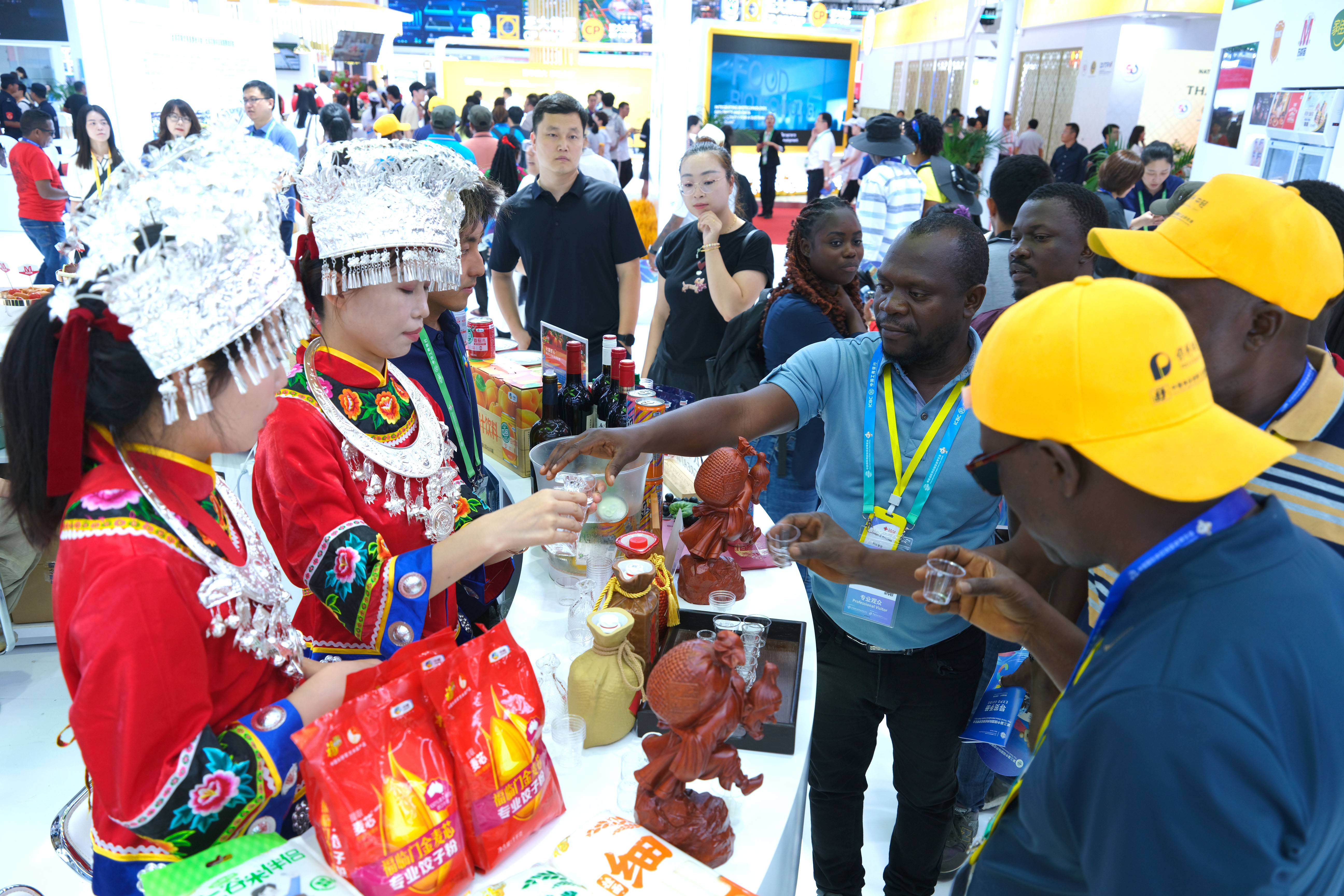 Visitors sample Chinese liquor at the third China International Supply Chain Expo in Beijing on July 16, 2025. /IC