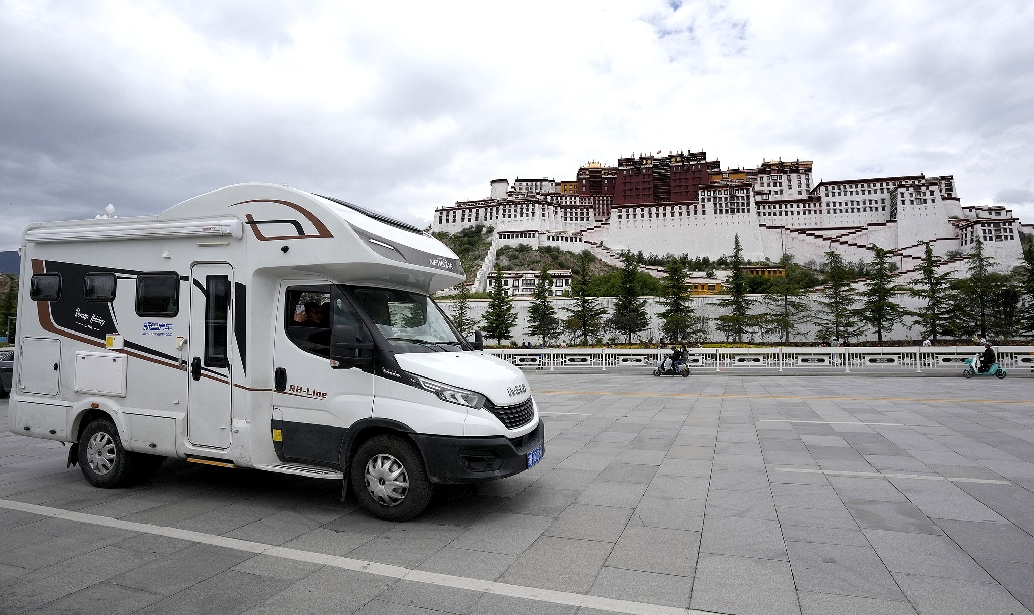 Travelers are seen driving past the Potala Palace in Lhasa, Xizang on July 3, 2025. During the peak summer travel season, self-driving tours to Xizang are an increasingly popular vacation choice. /VCG