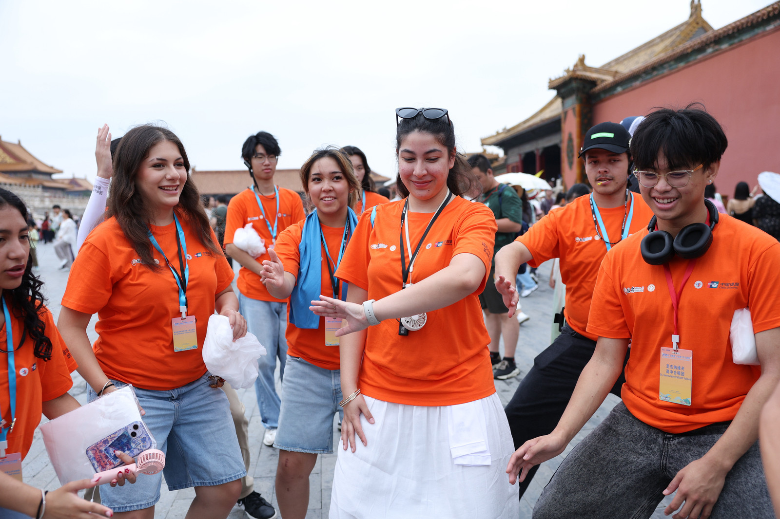 Young Americans sing and dance during their visit to the Palace Museum in Beijing, China, on July 16, 2025. /Photo provided to CGTN