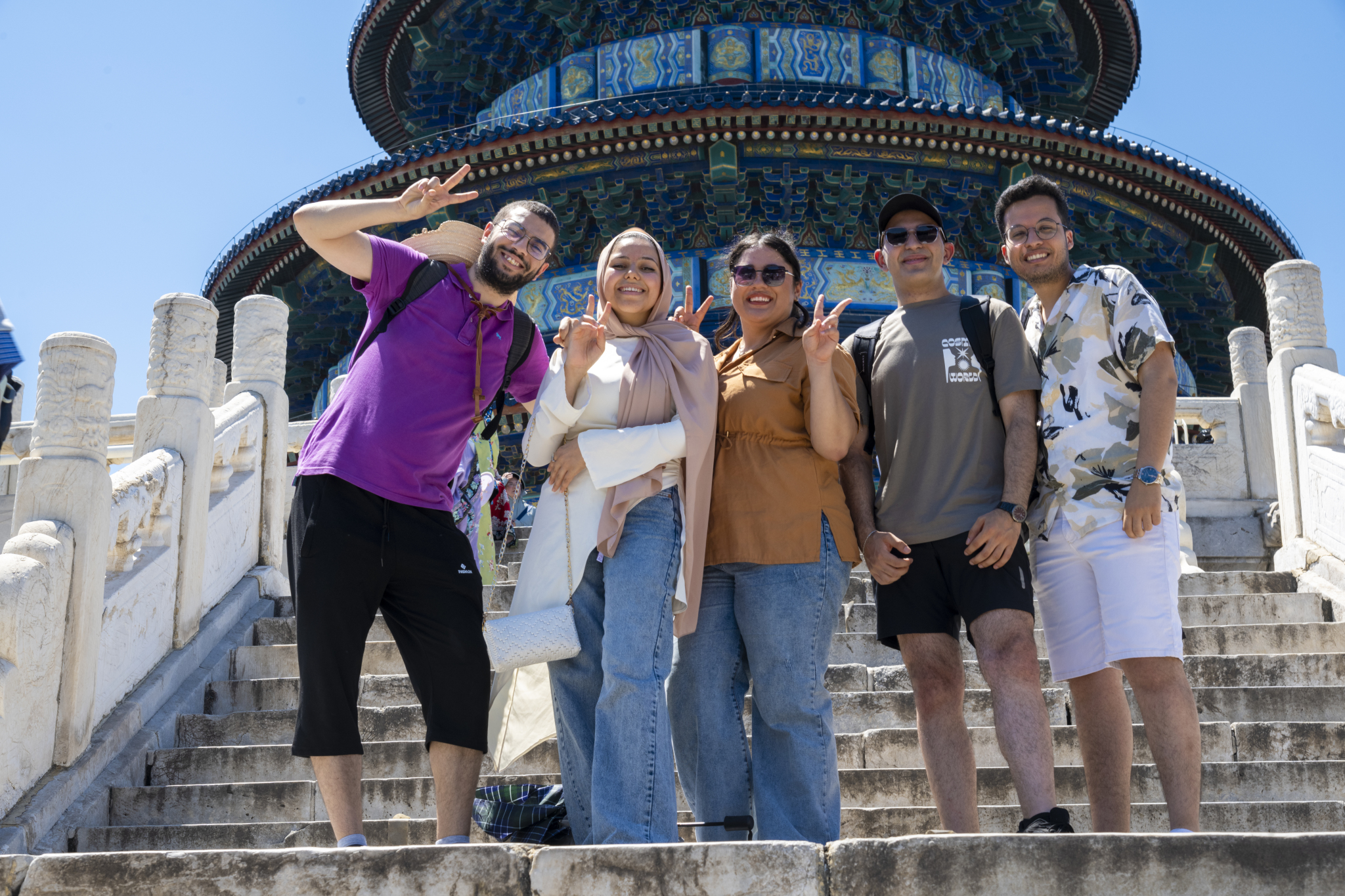 Tourists from abroad pose for photos at Beijing's Temple of Heaven on July 17, 2025. /VCG