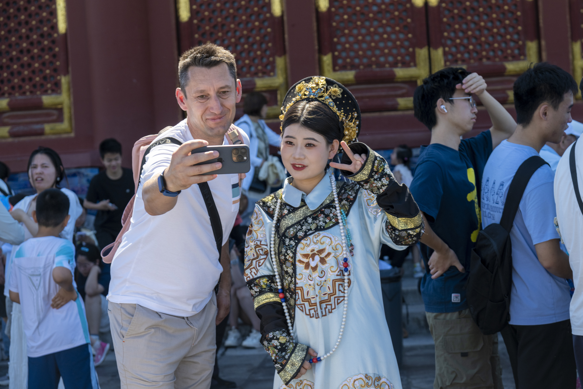 Visitors pose for photos on a Beijing street on July 17, 2025. /VCG