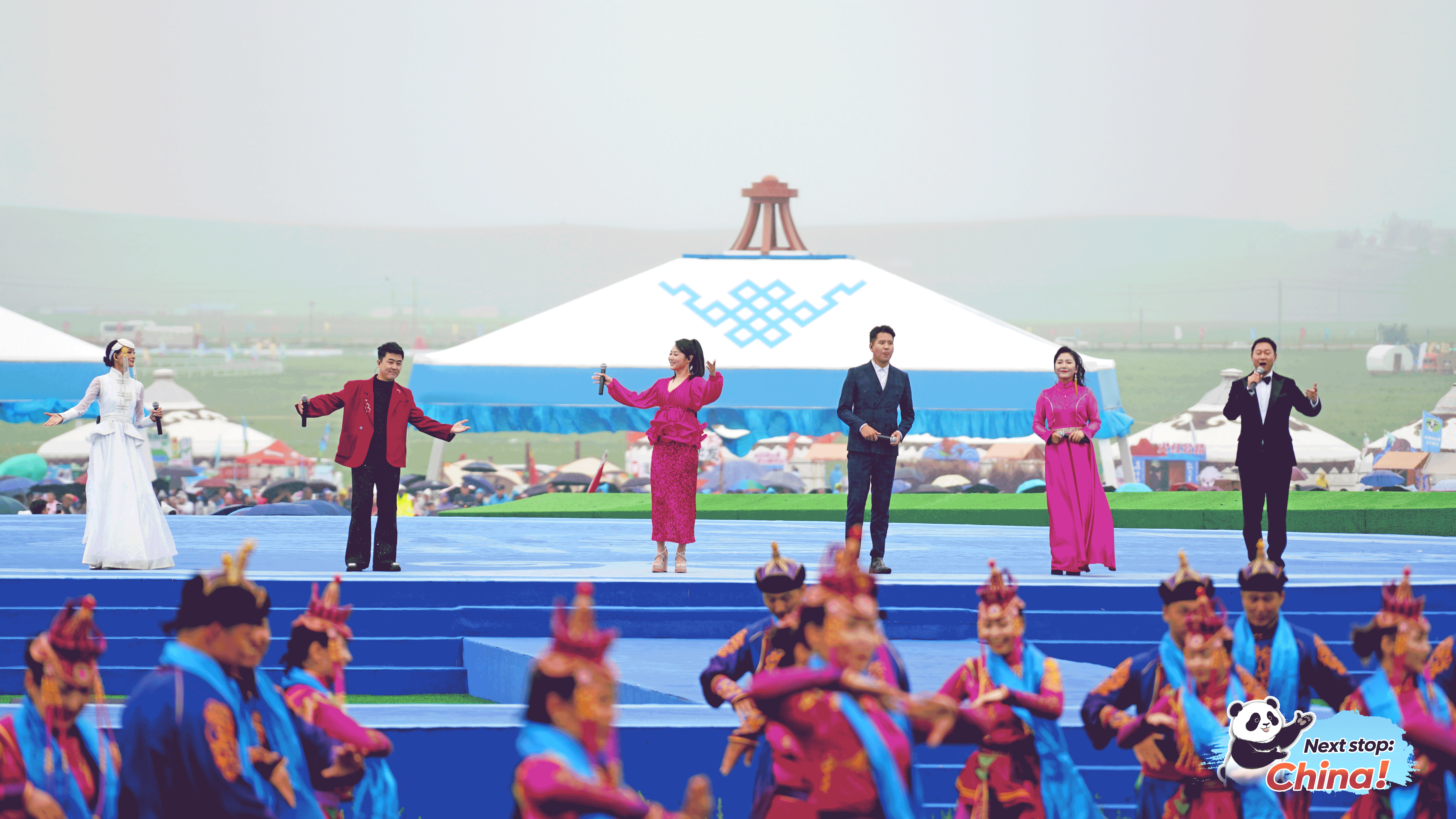 Artists perform during the opening ceremony of the 35th Naadam Festival in Xilin Gol League, north China's Inner Mongolia Autonomous Region, July 19, 2025. /CGTN